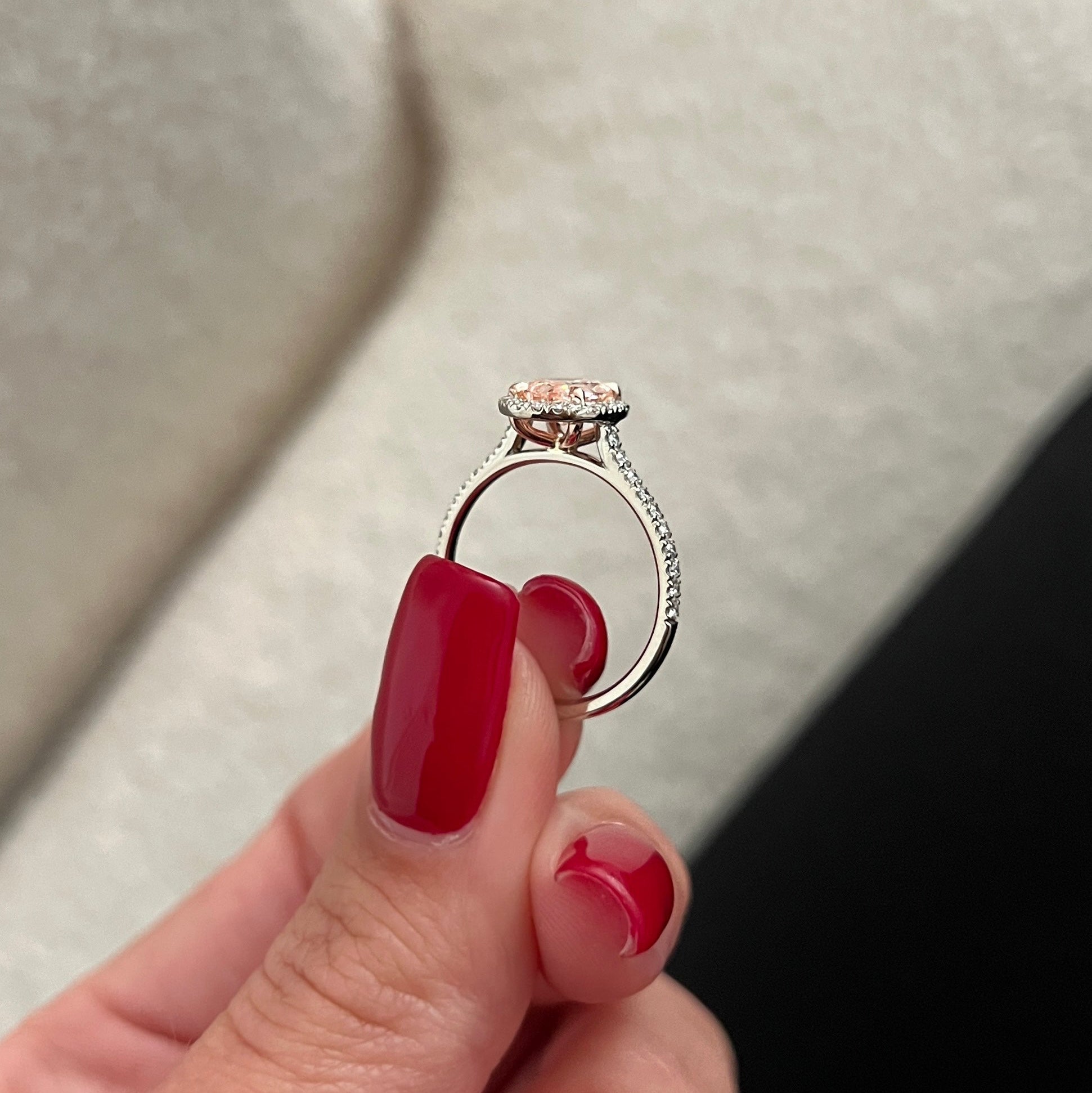 A captivating 1-carat oval fancy vivid pink lab-grown diamond ring is delicately set in a classic design featuring four graceful claw p...