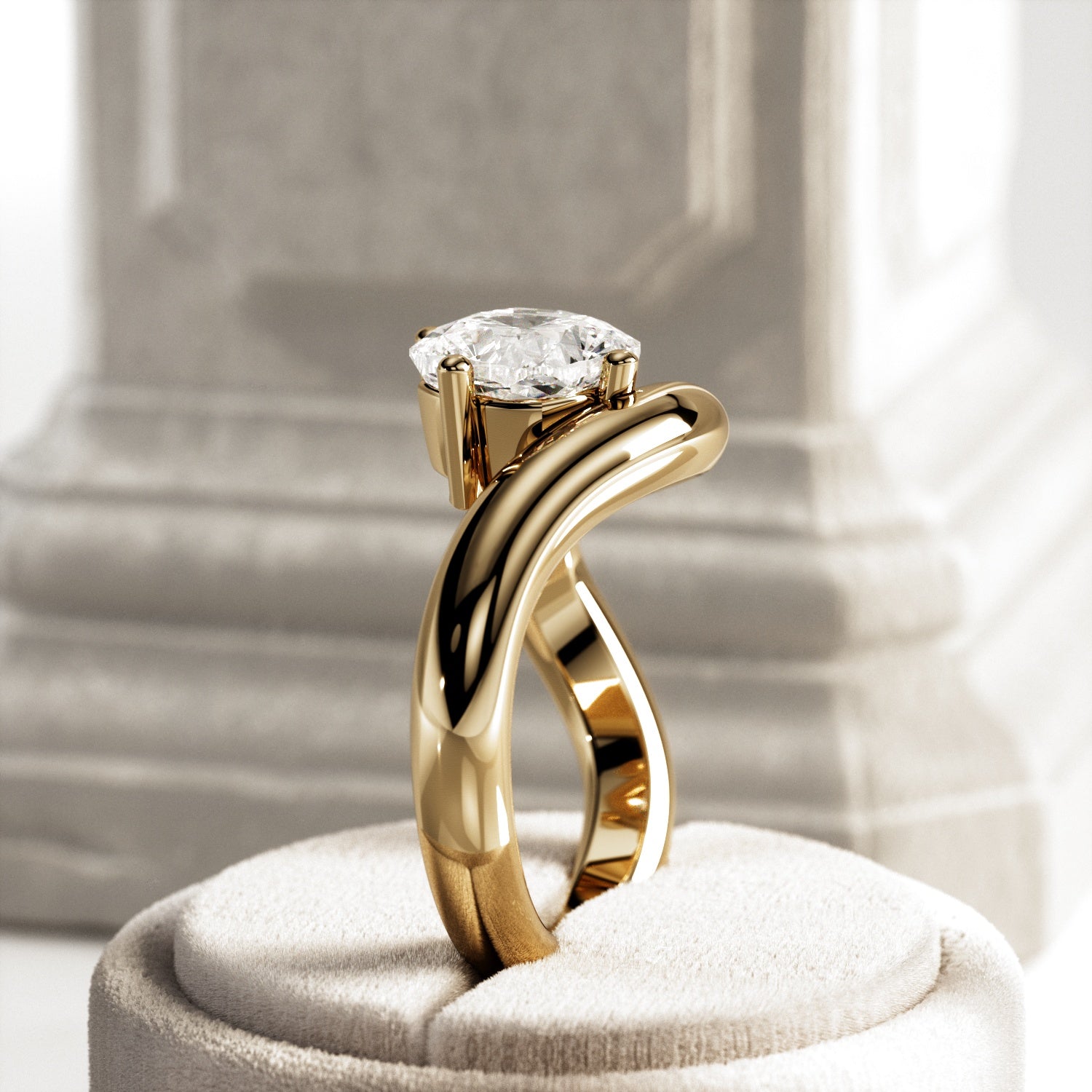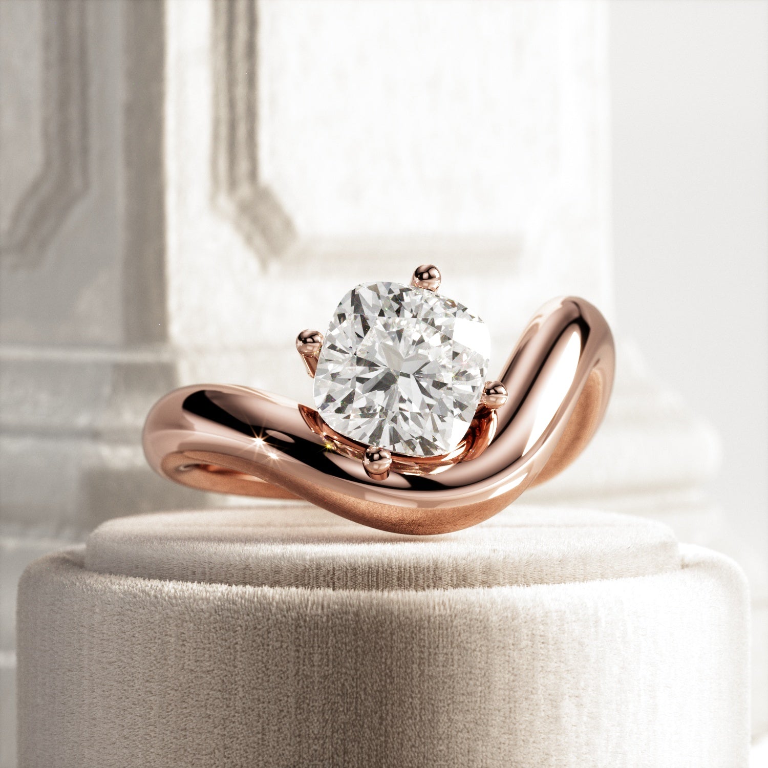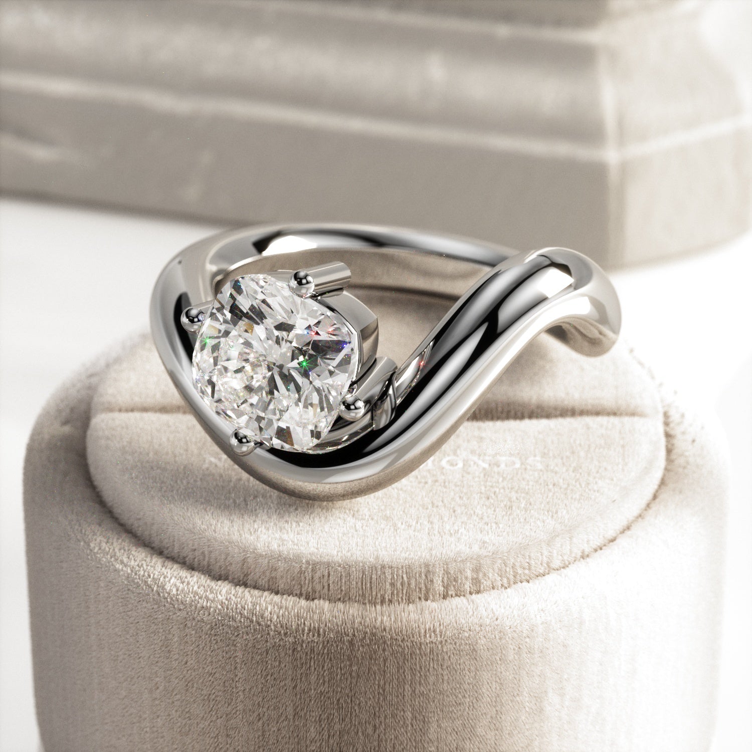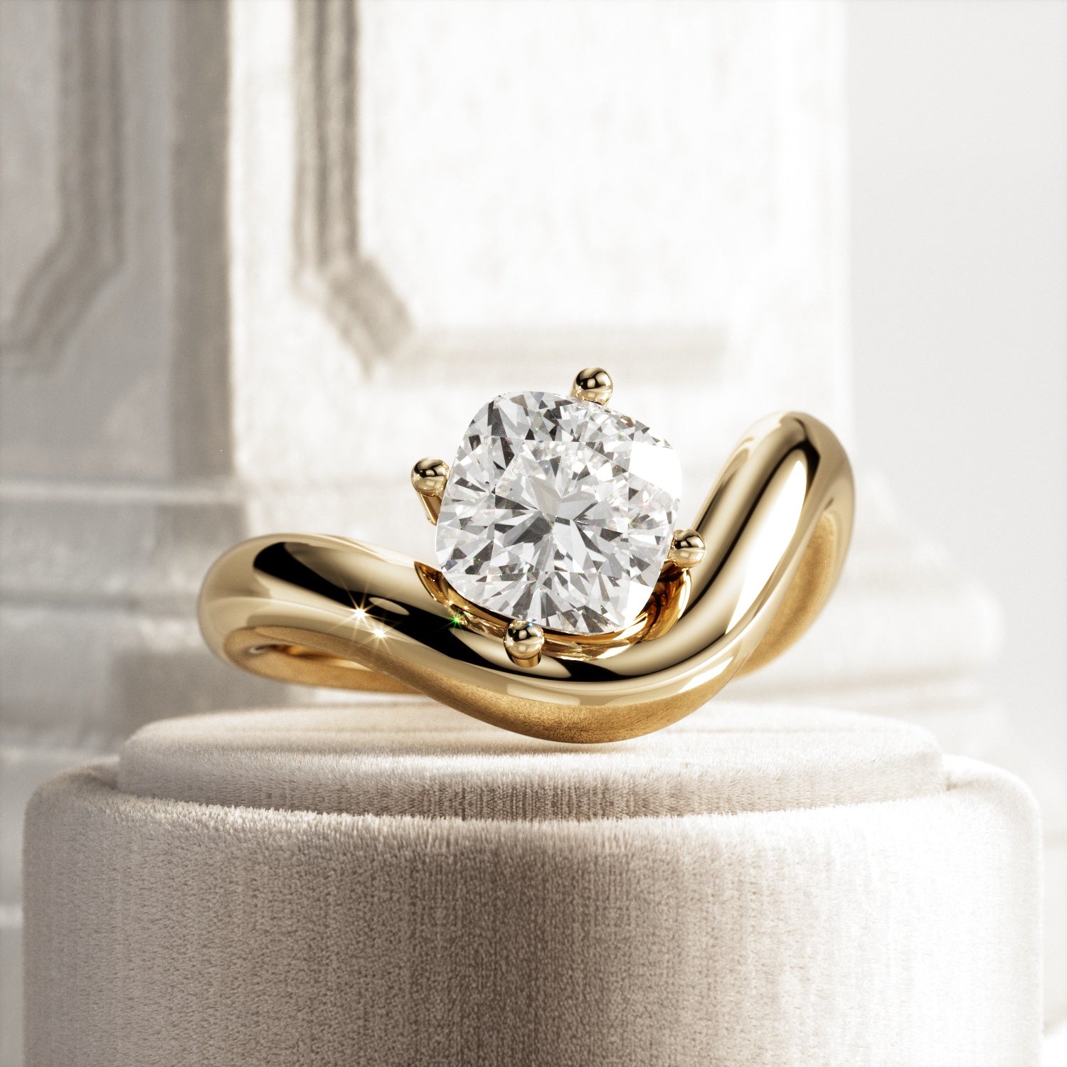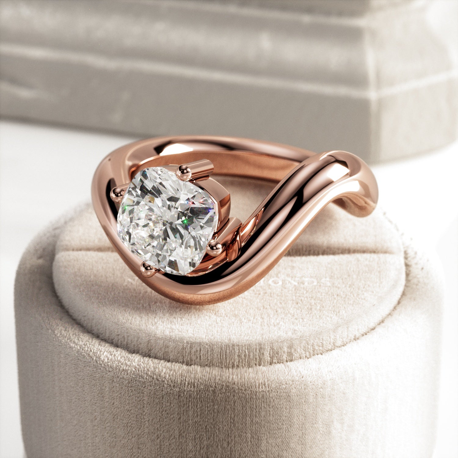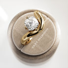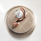 A striking interpretation of modern elegance, this sculptural engagement ring showcases a 2-carat cushion cut E VVS2 lab-grown diamond,...