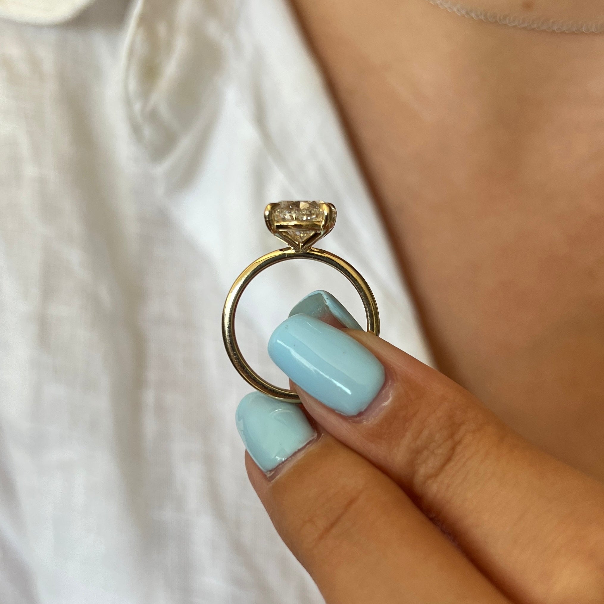 The 3.5 carat lab-grown diamond oval solitaire ring features a stunning oval-shaped lab grown diamond. Held securely by four claw prong...
