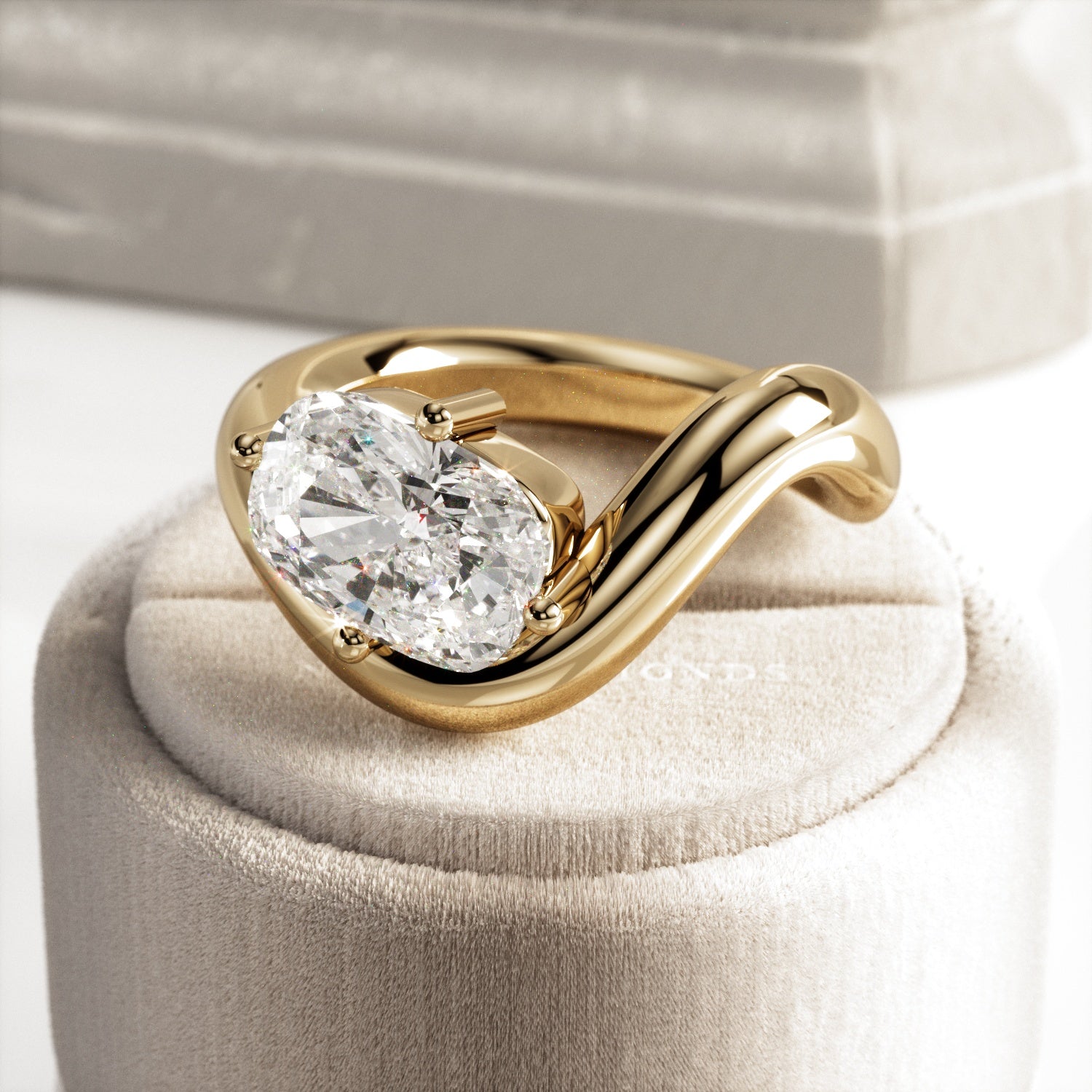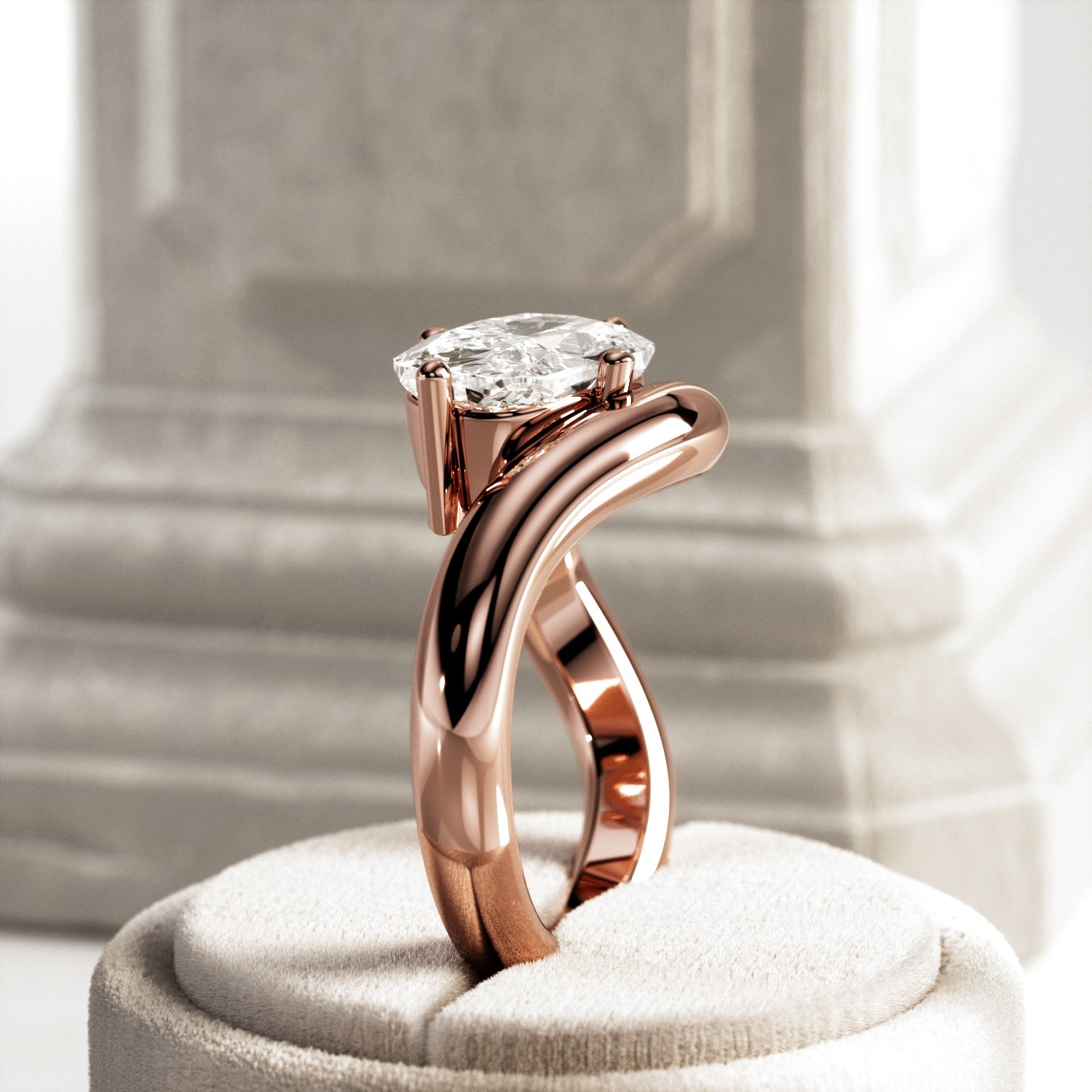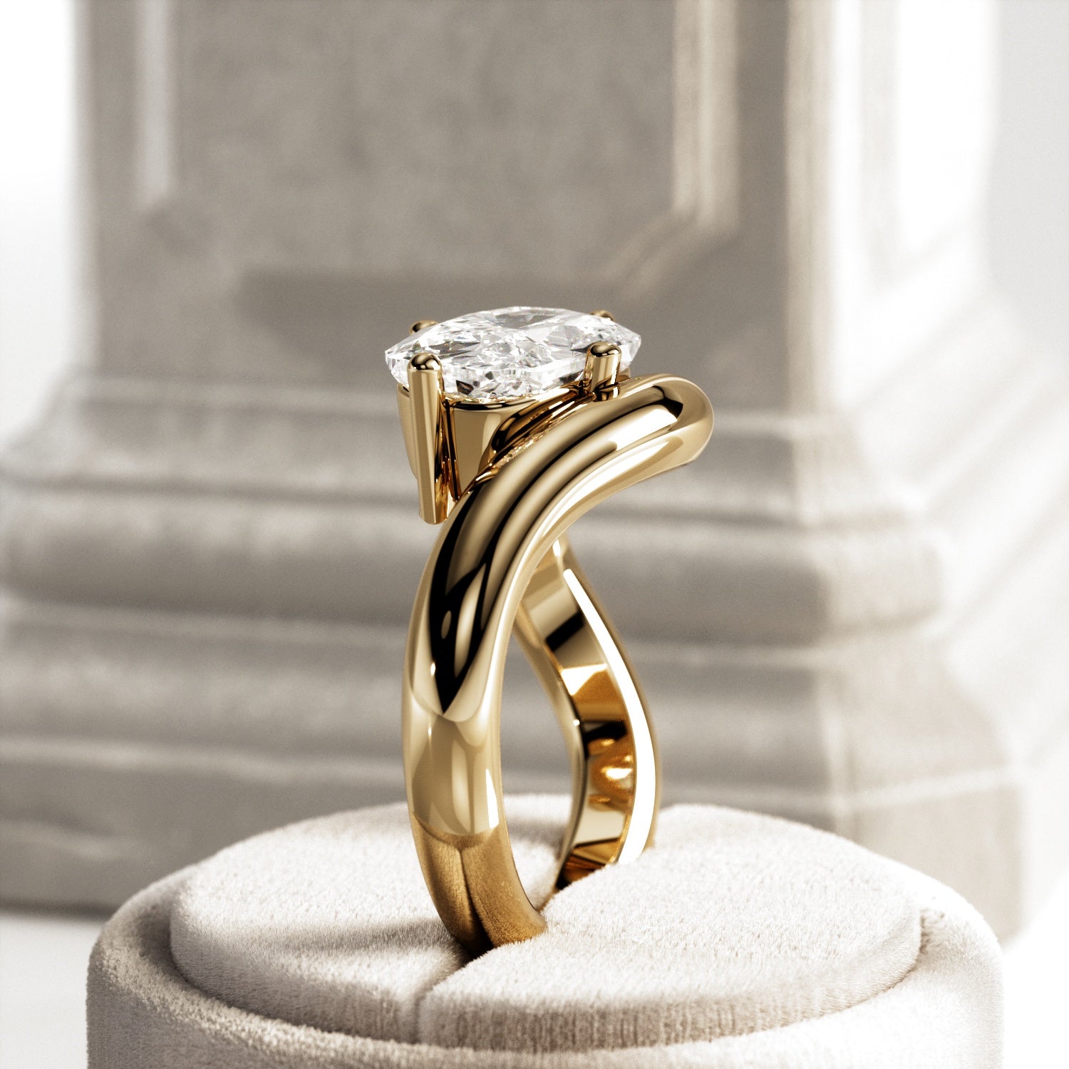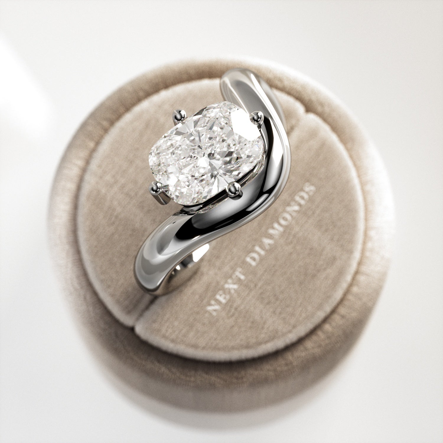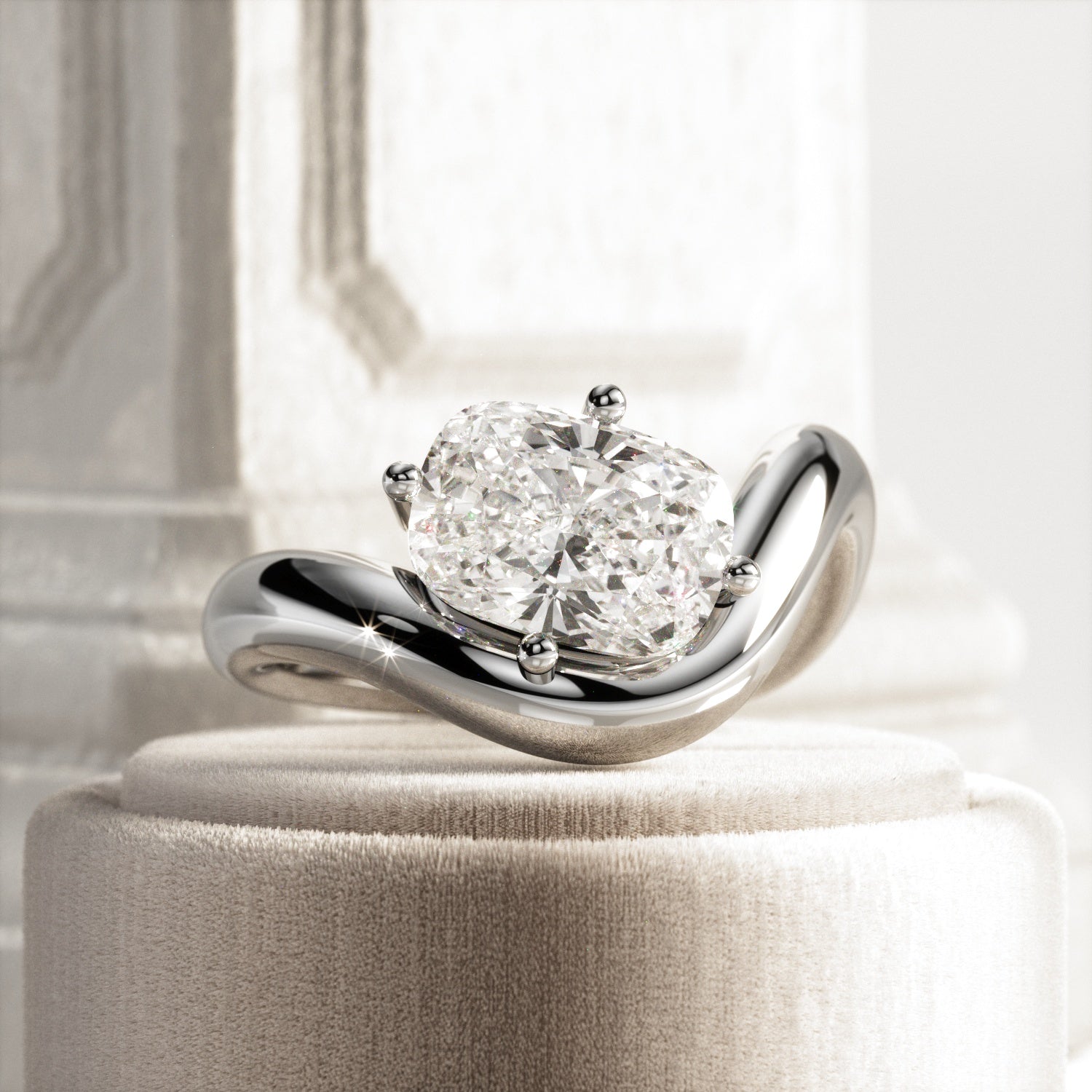 A striking interpretation of modern elegance, this sculptural engagement ring showcases a 2-carat elongated cushion lab-grown diamond, ...