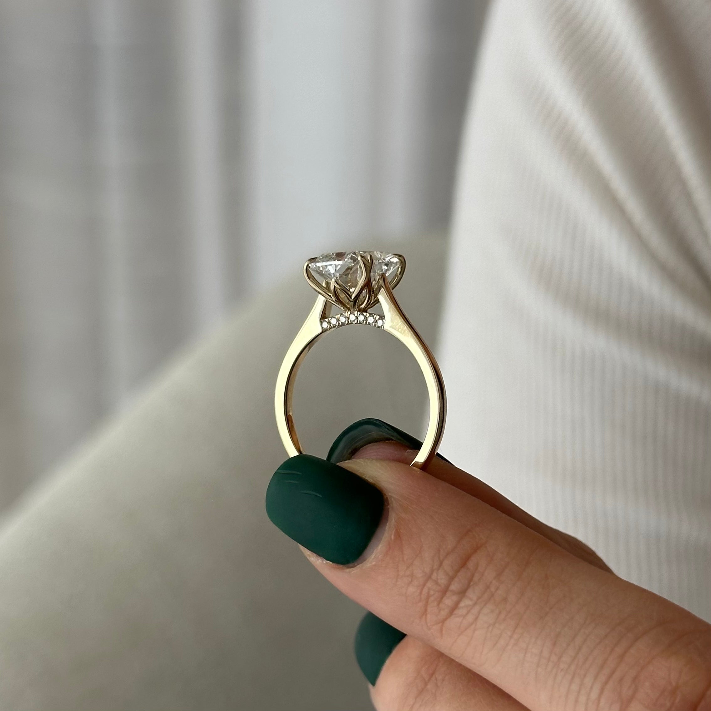 We understand that selecting the perfect diamond can be overwhelming, which is why we take care of the process for you. Our team of experts meticulously selects each diamond to ensure it meets our strict criteria for brilliance and beauty. By offering pre-designed rings with handpicked diamonds, we take the guesswork out of the equation, allowing you to trust that you're receiving nothing but the best.