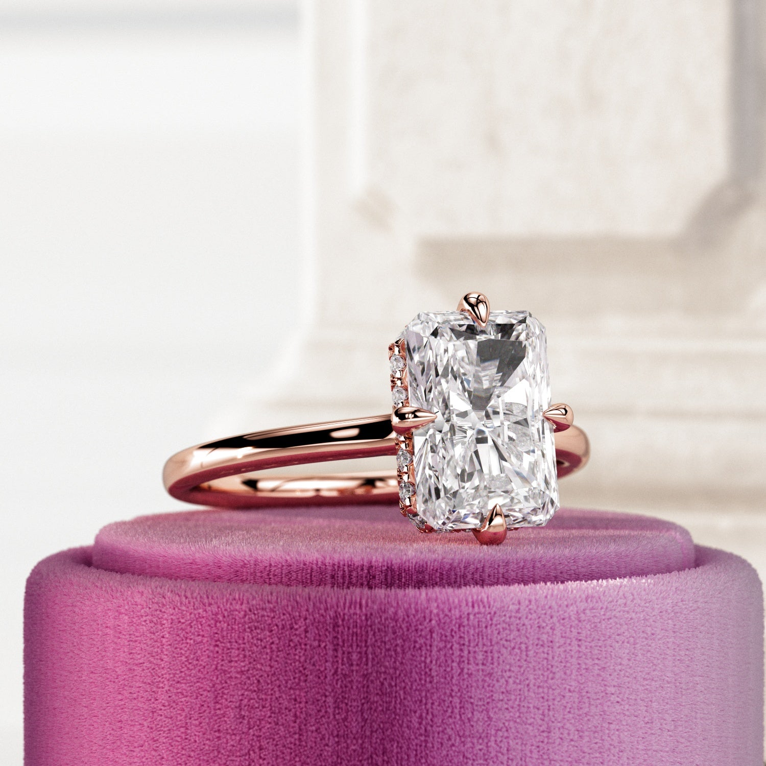 At Next Diamonds, we're dedicated to offering premium-quality diamond engagement rings that are meticulously crafted for exceptional beauty and durability. Each ring is handcrafted with care and attention to detail, ensuring flawless assembly and meticulous finishing. Our diamonds are handpicked to meet strict standards for color, clarity, and cut, with a minimum grade of F in color, VS1 in clarity, and Excellent in cut. We take pride in creating truly unique, handmade pieces of jewelry that are guaranteed to be cherished for a lifetime. Before shipment, every piece undergoes thorough inspection to ensure it meets our standards of quality