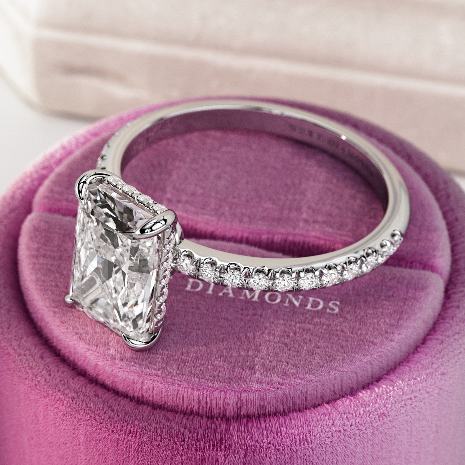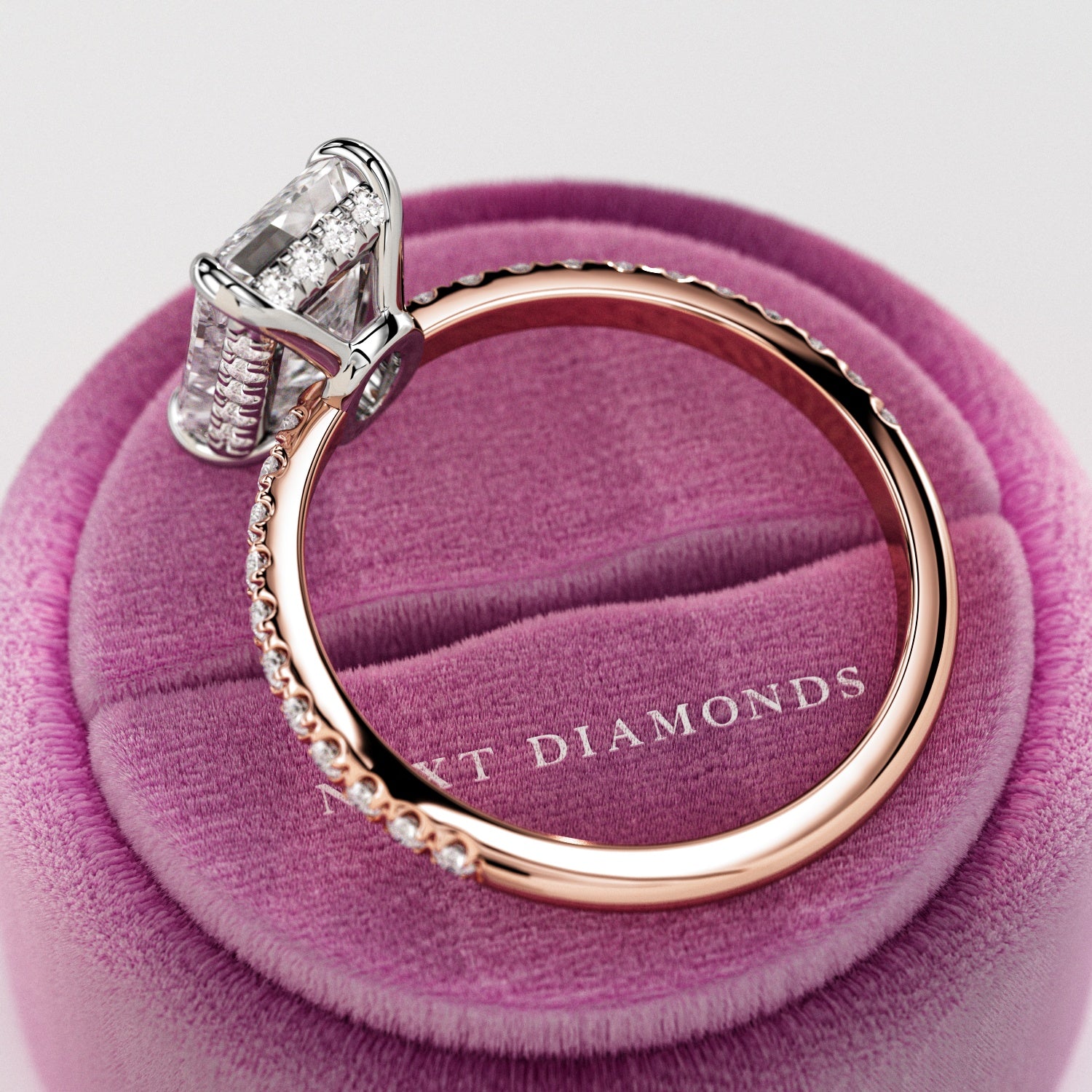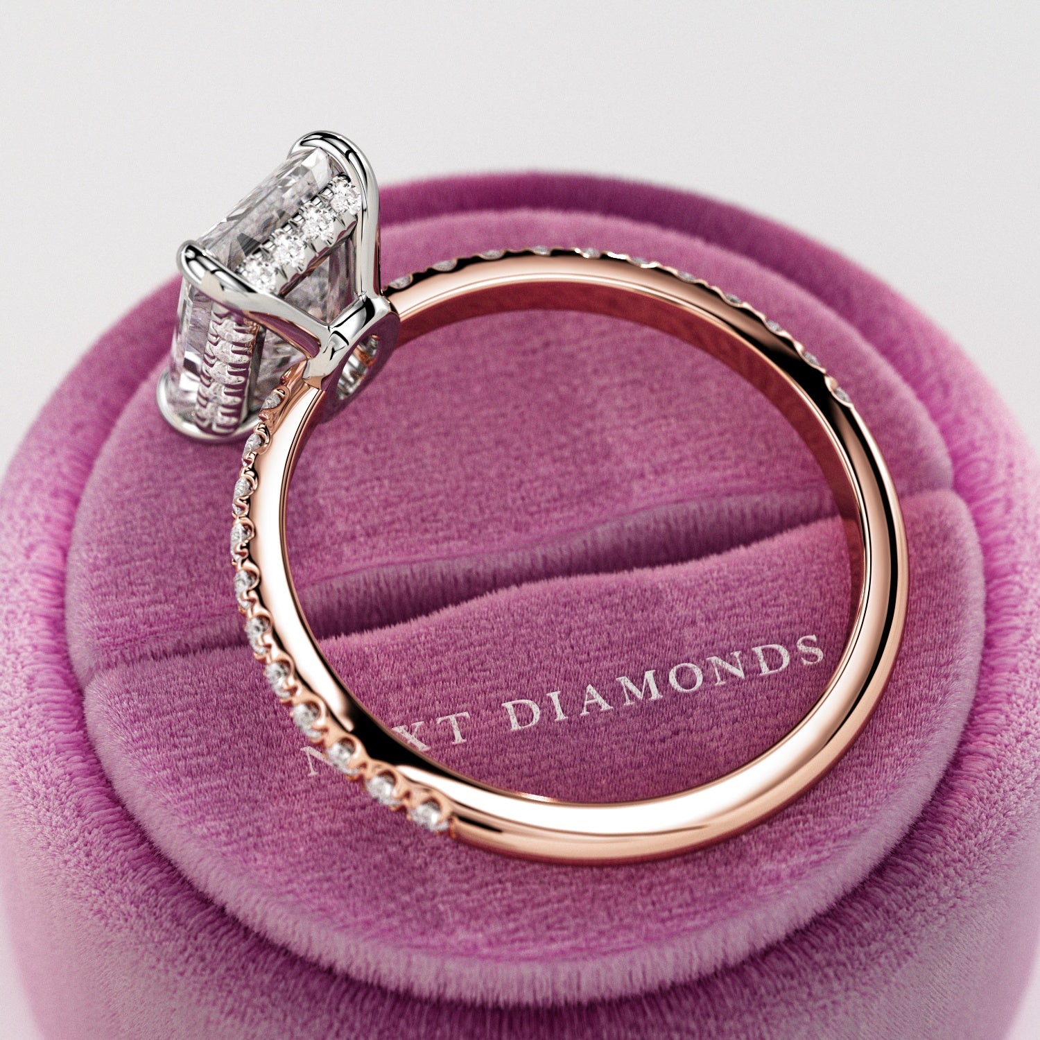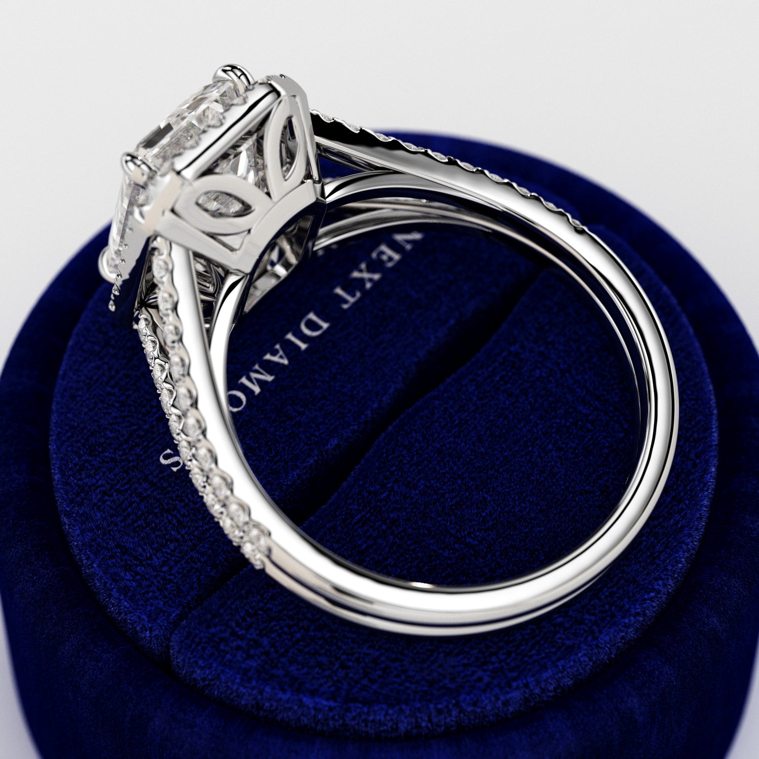 At Next Diamonds, we're dedicated to offering premium-quality diamond engagement rings that are meticulously crafted for exceptional beauty and durability. Each ring is handcrafted with care and attention to detail, ensuring flawless assembly and meticulous finishing. Our diamonds are handpicked to meet strict standards for color, clarity, and cut, with a minimum grade of F in color, VS1 in clarity, and Excellent in cut. We take pride in creating truly unique, handmade pieces of jewelry that are guaranteed to be cherished for a lifetime. Before shipment, every piece undergoes thorough inspection to ensure it meets our standards of quality