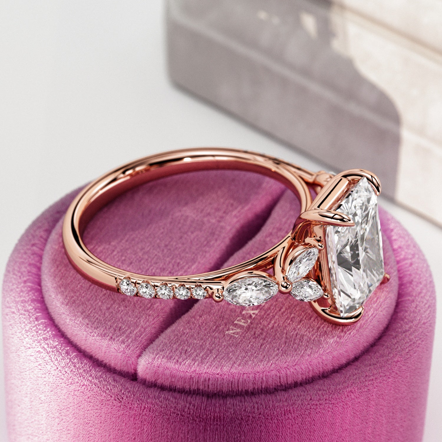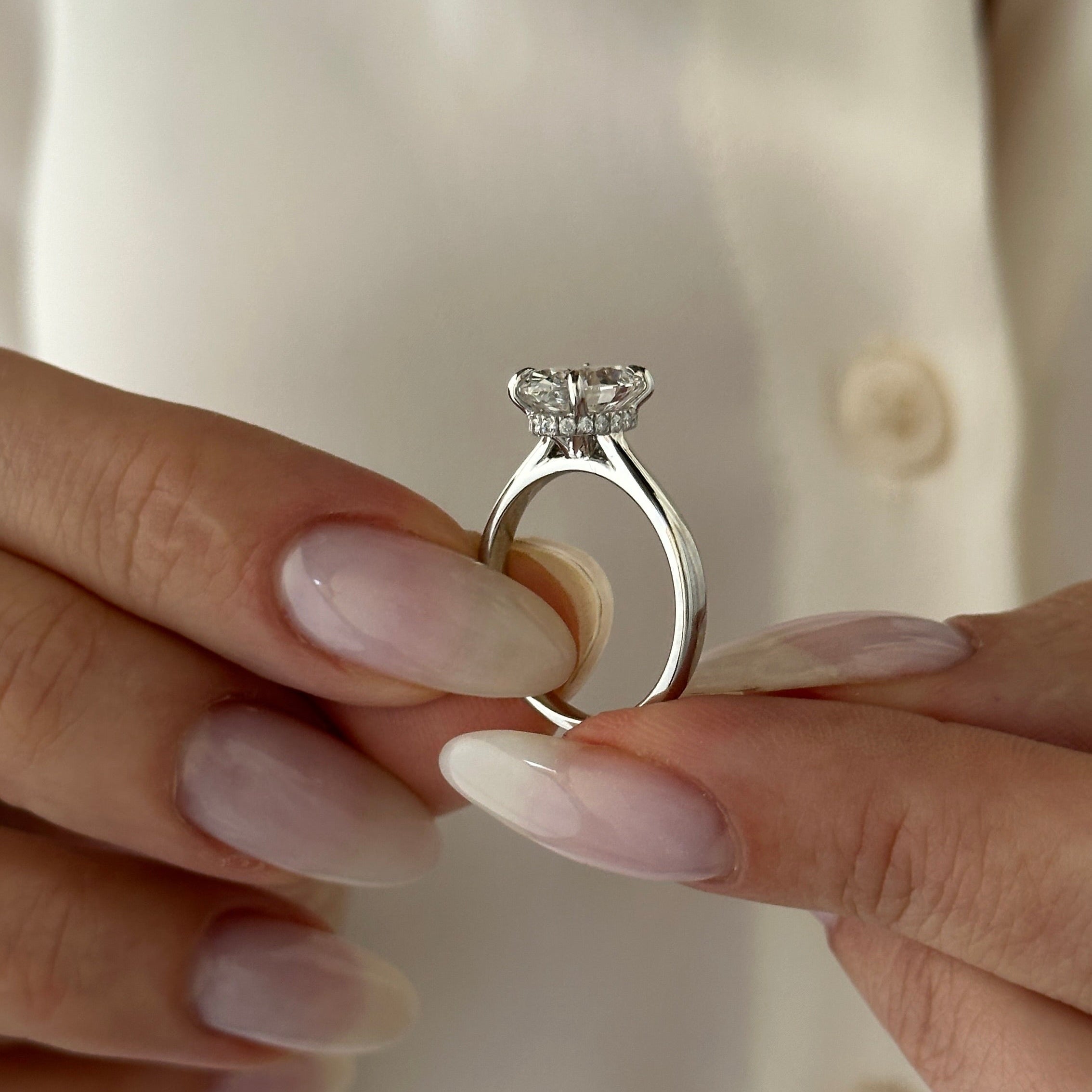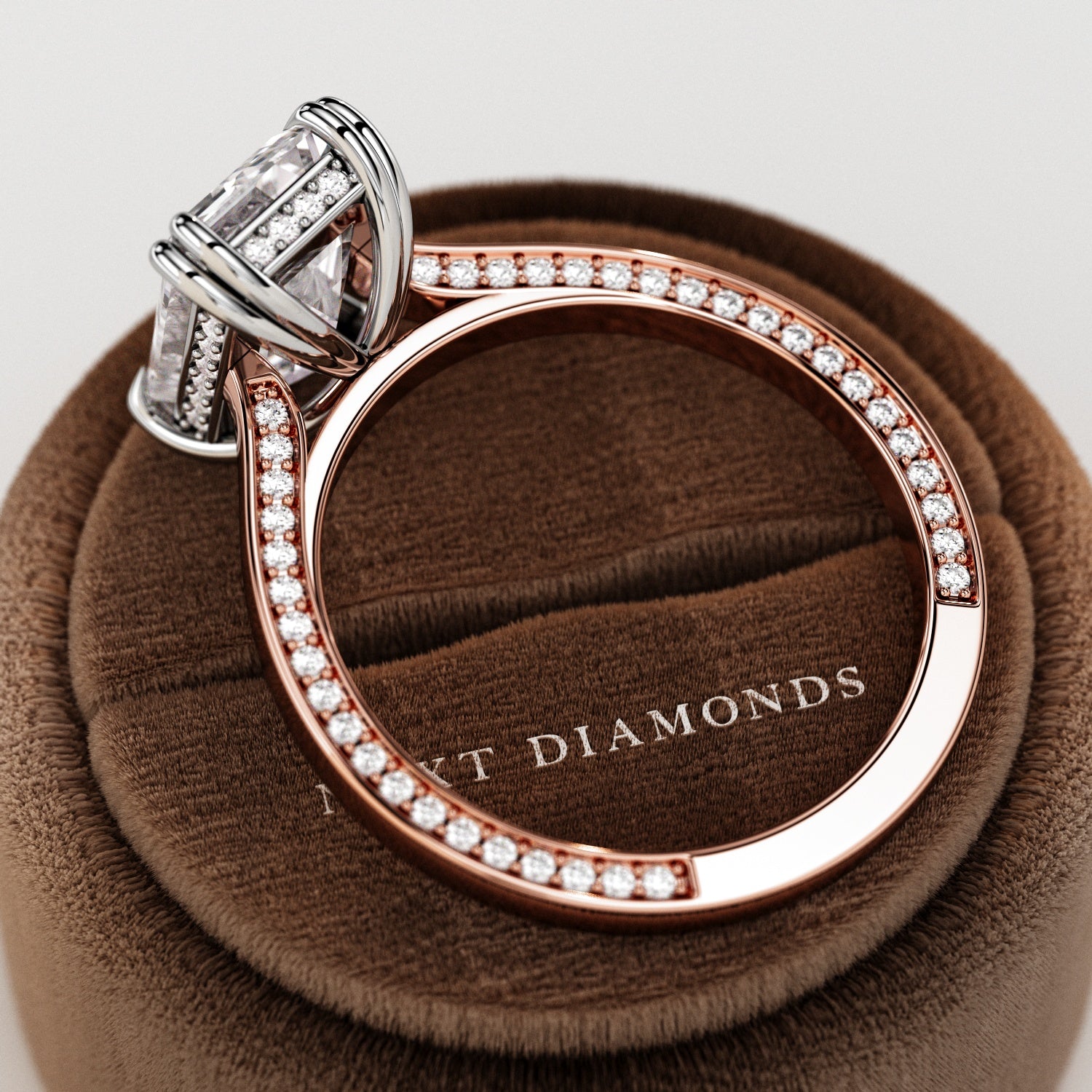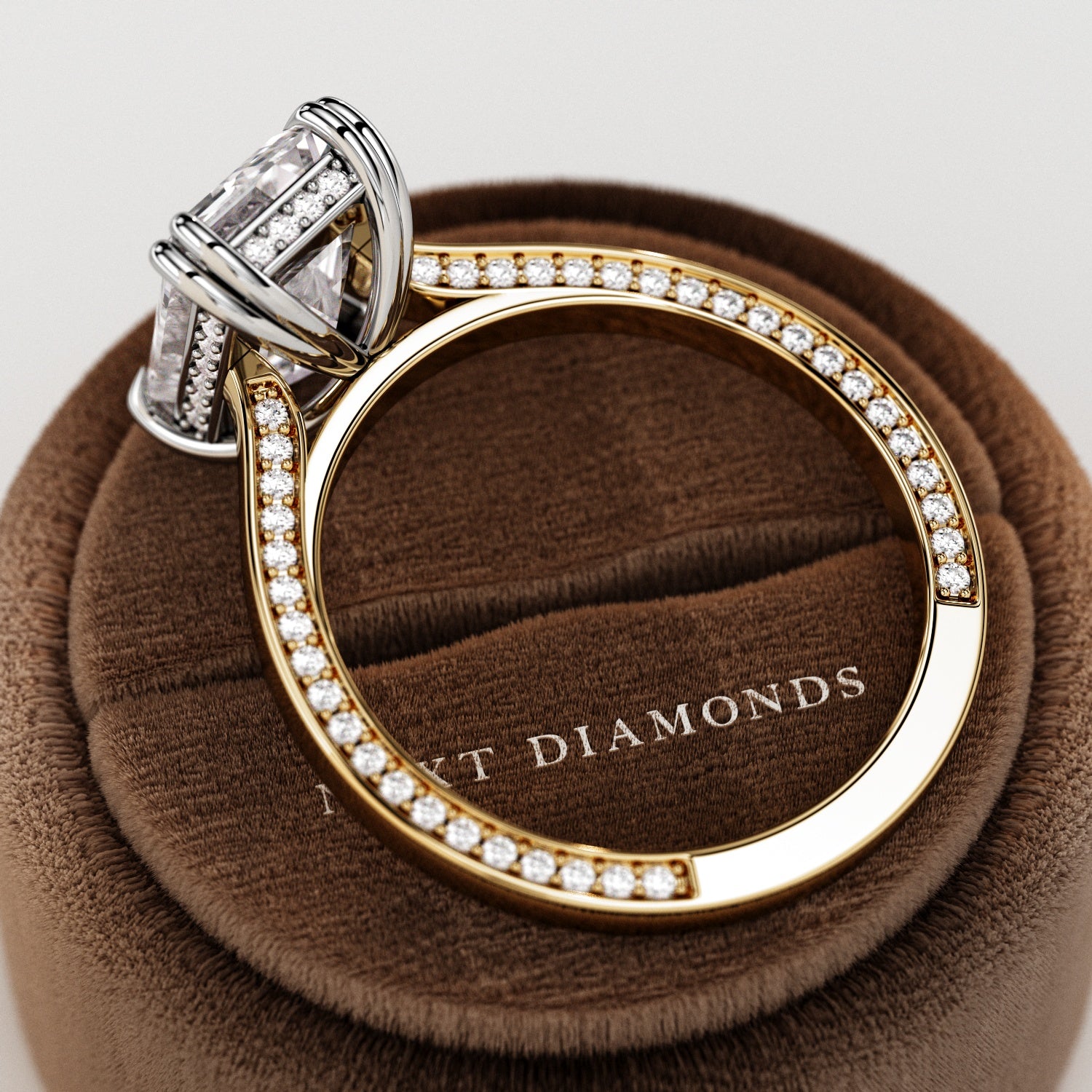 At Next Diamonds, we're dedicated to offering premium-quality diamond engagement rings that are meticulously crafted for exceptional beauty and durability. Each ring is handcrafted with care and attention to detail, ensuring flawless assembly and meticulous finishing. Our diamonds are handpicked to meet strict standards for color, clarity, and cut, with a minimum grade of F in color, VS1 in clarity, and Excellent in cut. We take pride in creating truly unique, handmade pieces of jewelry that are guaranteed to be cherished for a lifetime. Before shipment, every piece undergoes thorough inspection to ensure it meets our standards of quality