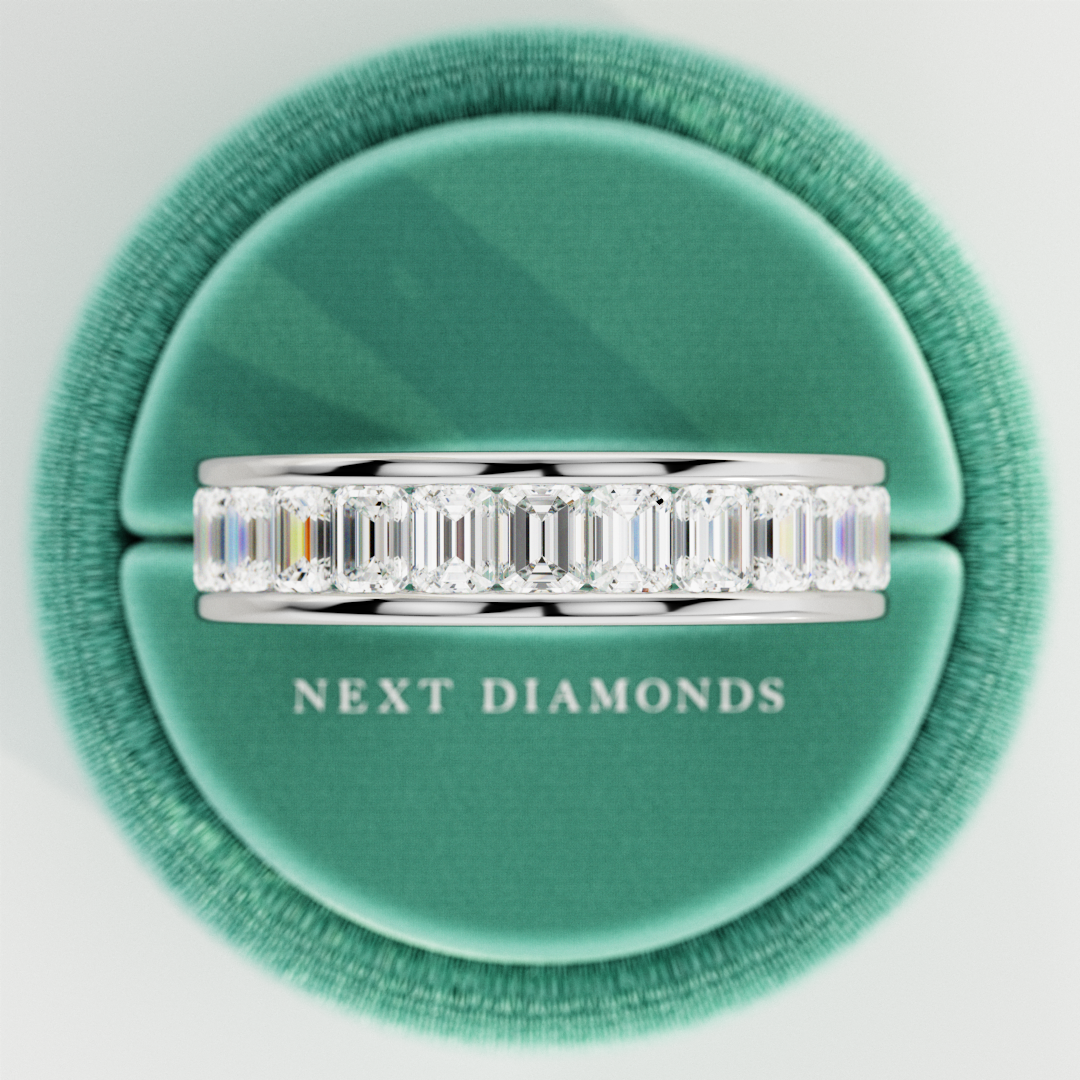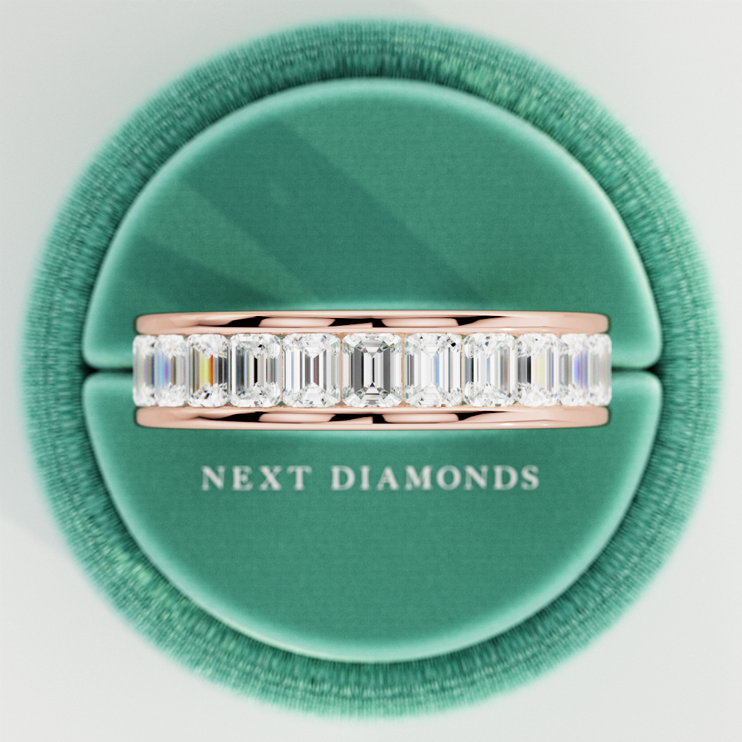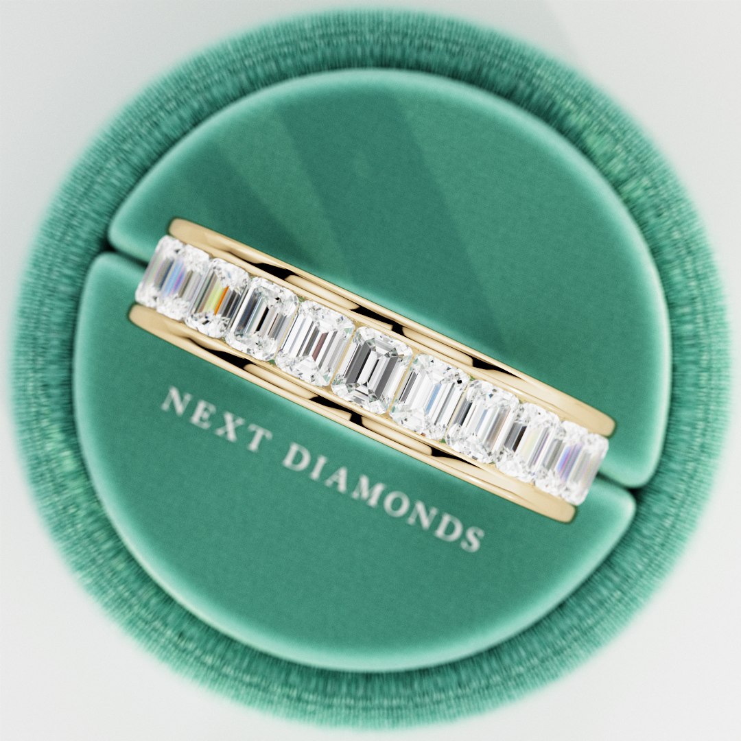 At Next Diamonds, we prioritize environmental sustainability and ethical practices. Our jewelry is crafted with recycled gold sourced from post-consumer material, ensuring high quality. We exclusively offer lab-grown diamonds, providing an ethical and sustainable alternative to mined diamonds. When you choose a diamond wedding band from us, you support responsible practices in the jewelry industry.