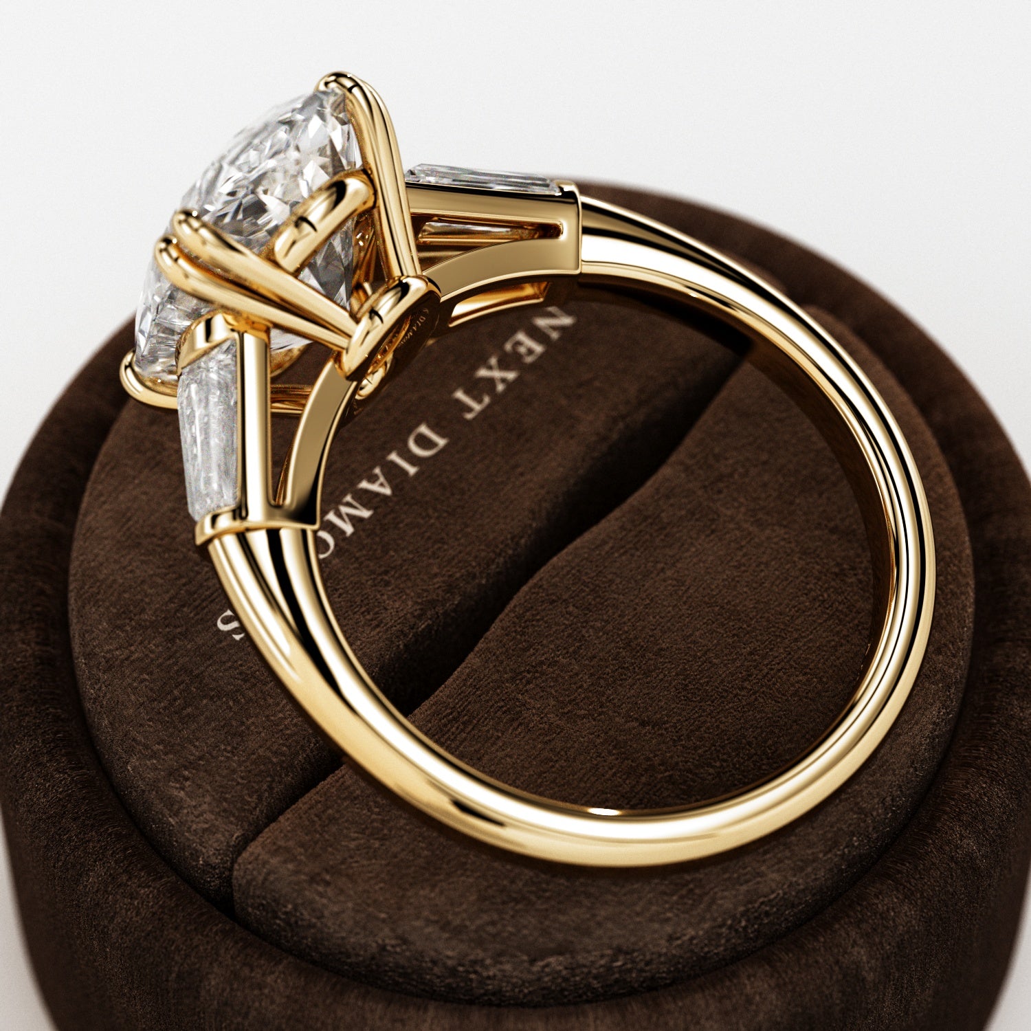 Traditionally, the engagement ring is worn closer to the heart, followed by the wedding band. However, there's no strict rule, and some choose to wear the wedding band first, with the engagement ring on top. Ultimately, it's a personal choice, and there's no right or wrong way to wear your bridal set.