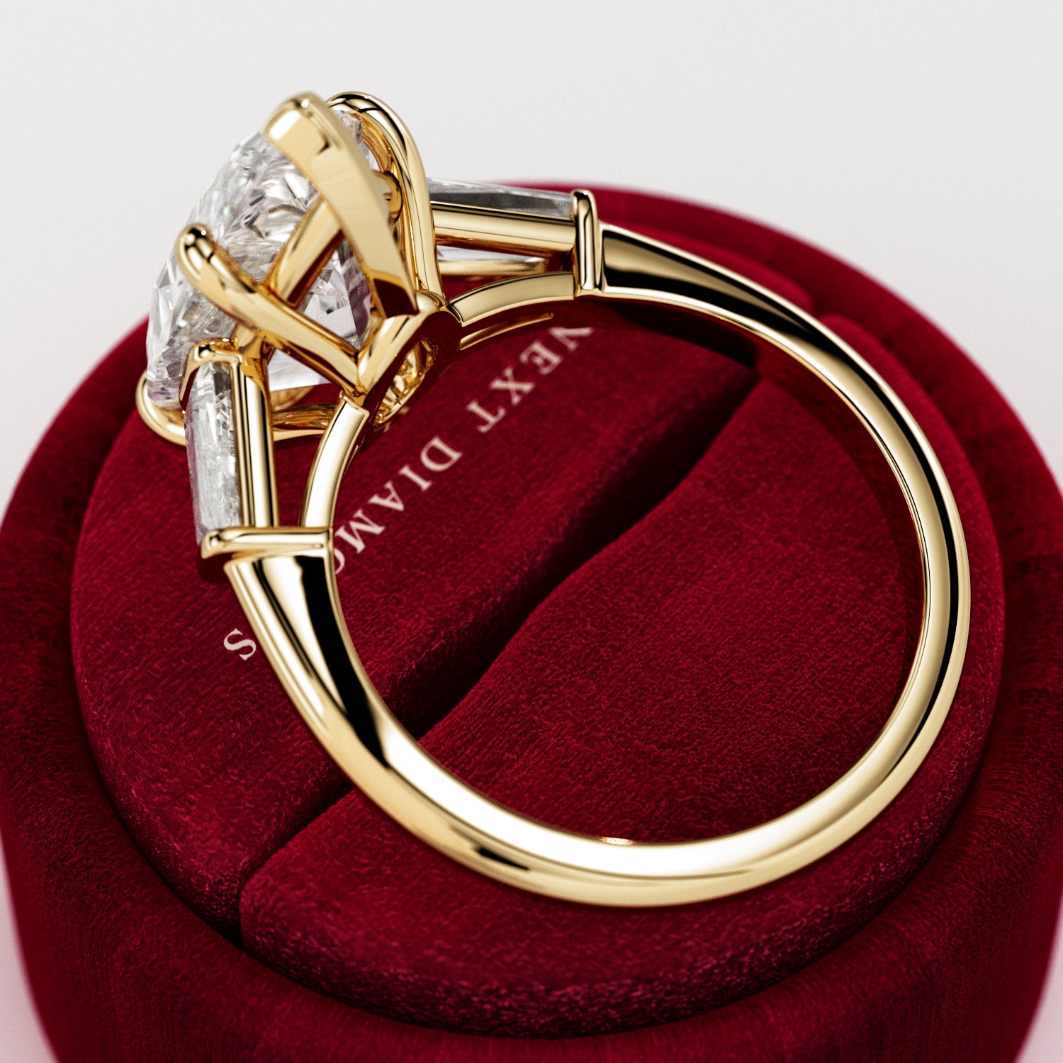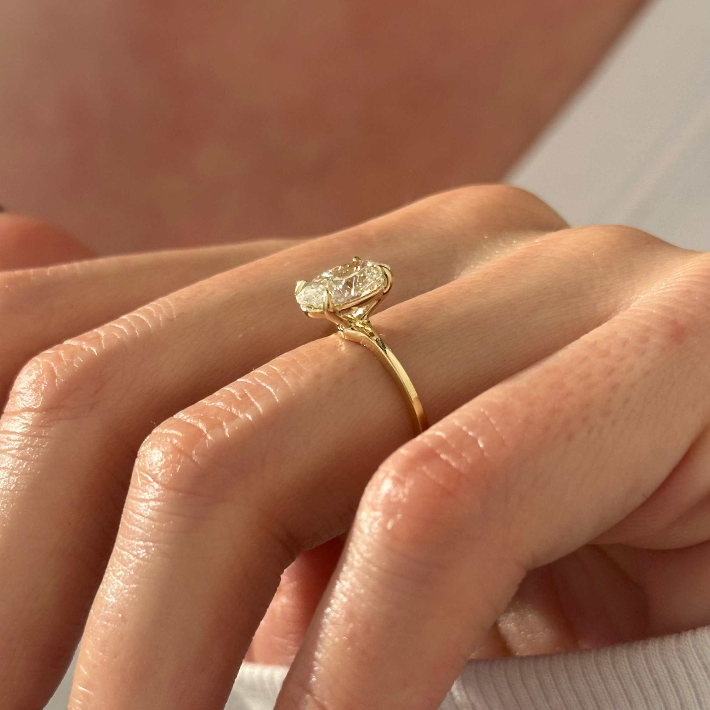 Traditionally, the engagement ring is worn closer to the heart, followed by the wedding band. However, there's no strict rule, and some choose to wear the wedding band first, with the engagement ring on top. Ultimately, it's a personal choice, and there's no right or wrong way to wear your bridal set.