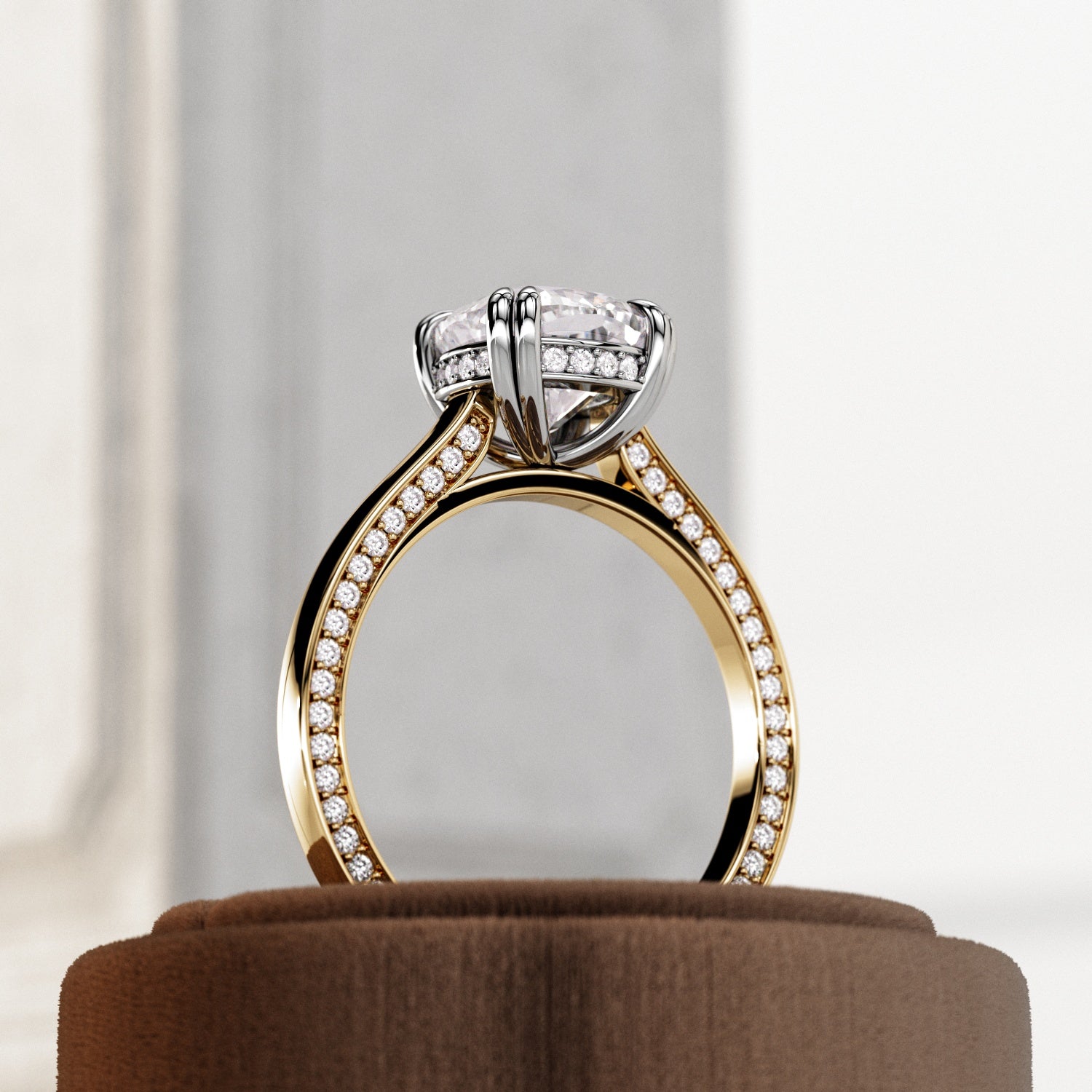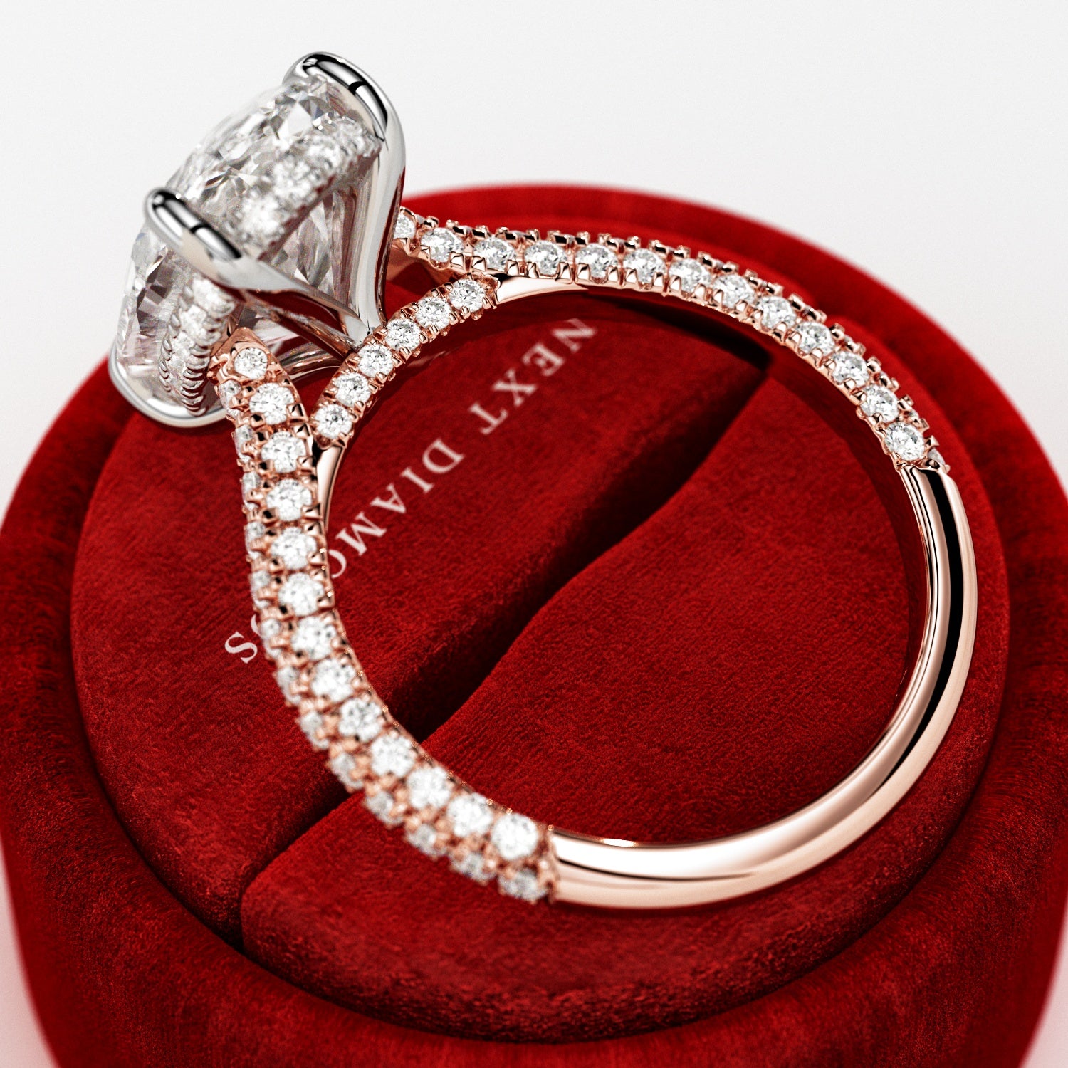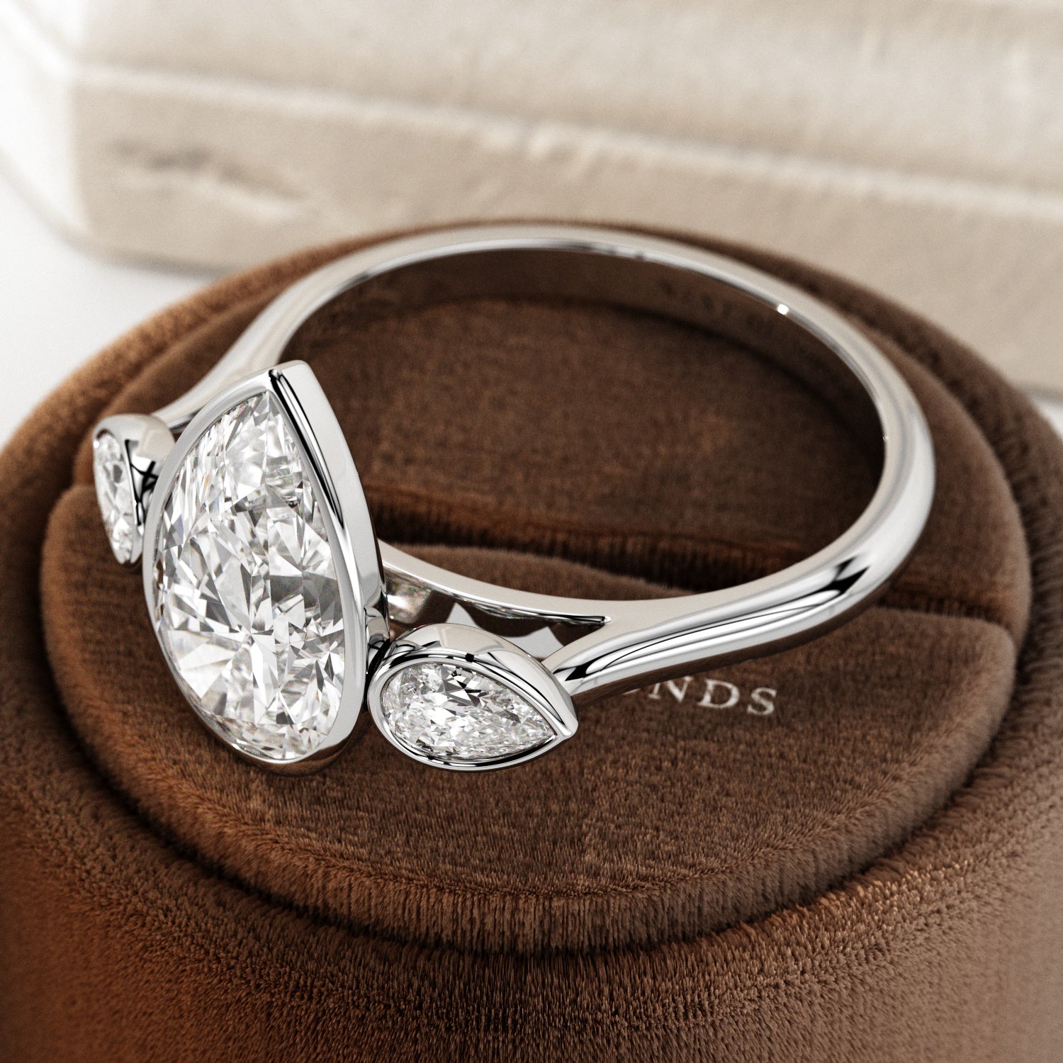 A bridal set ring is a coordinated pair of rings designed to be worn together, typically consisting of an engagement ring and a matching wedding band. These sets are crafted to complement each other aesthetically and symbolize the unity of marriage.