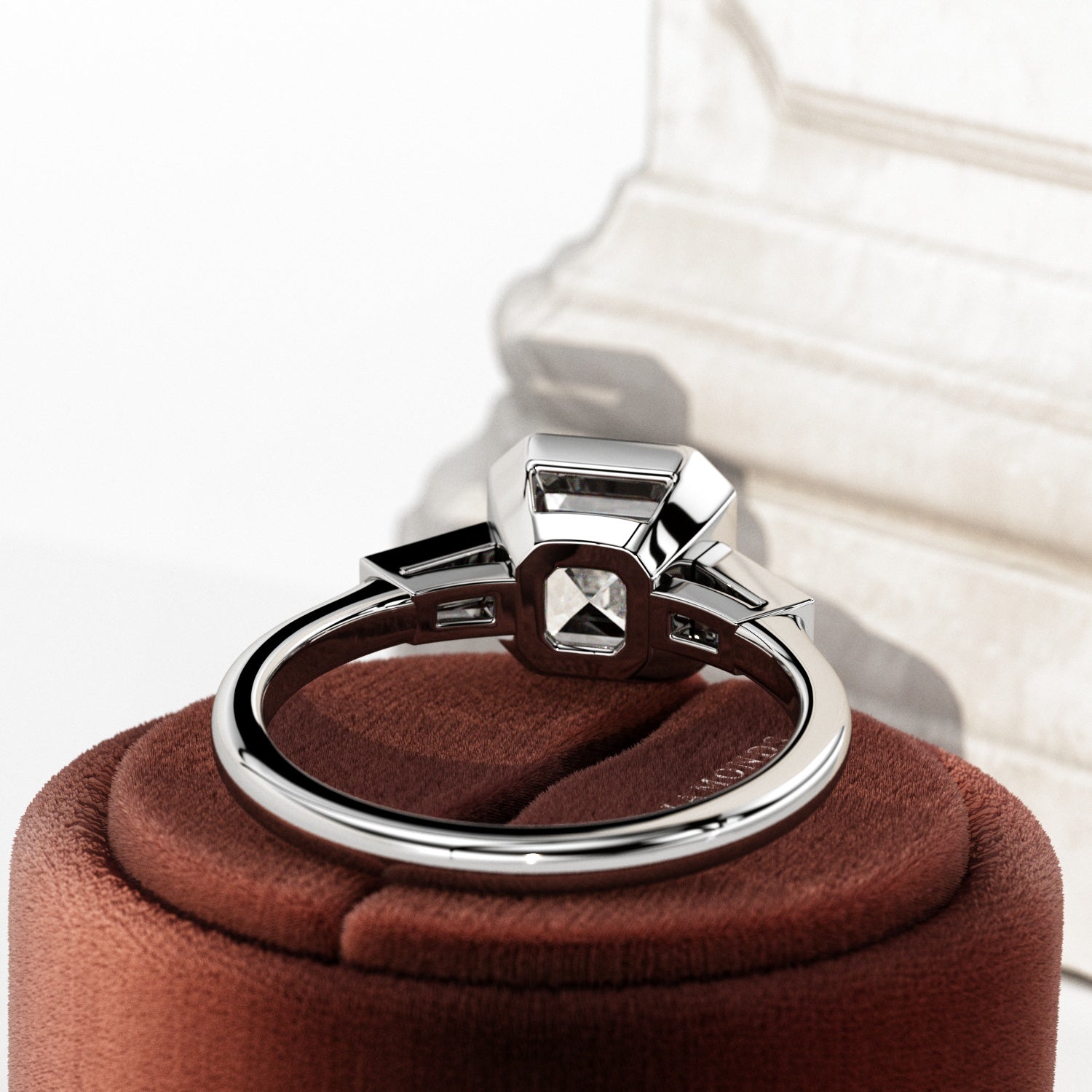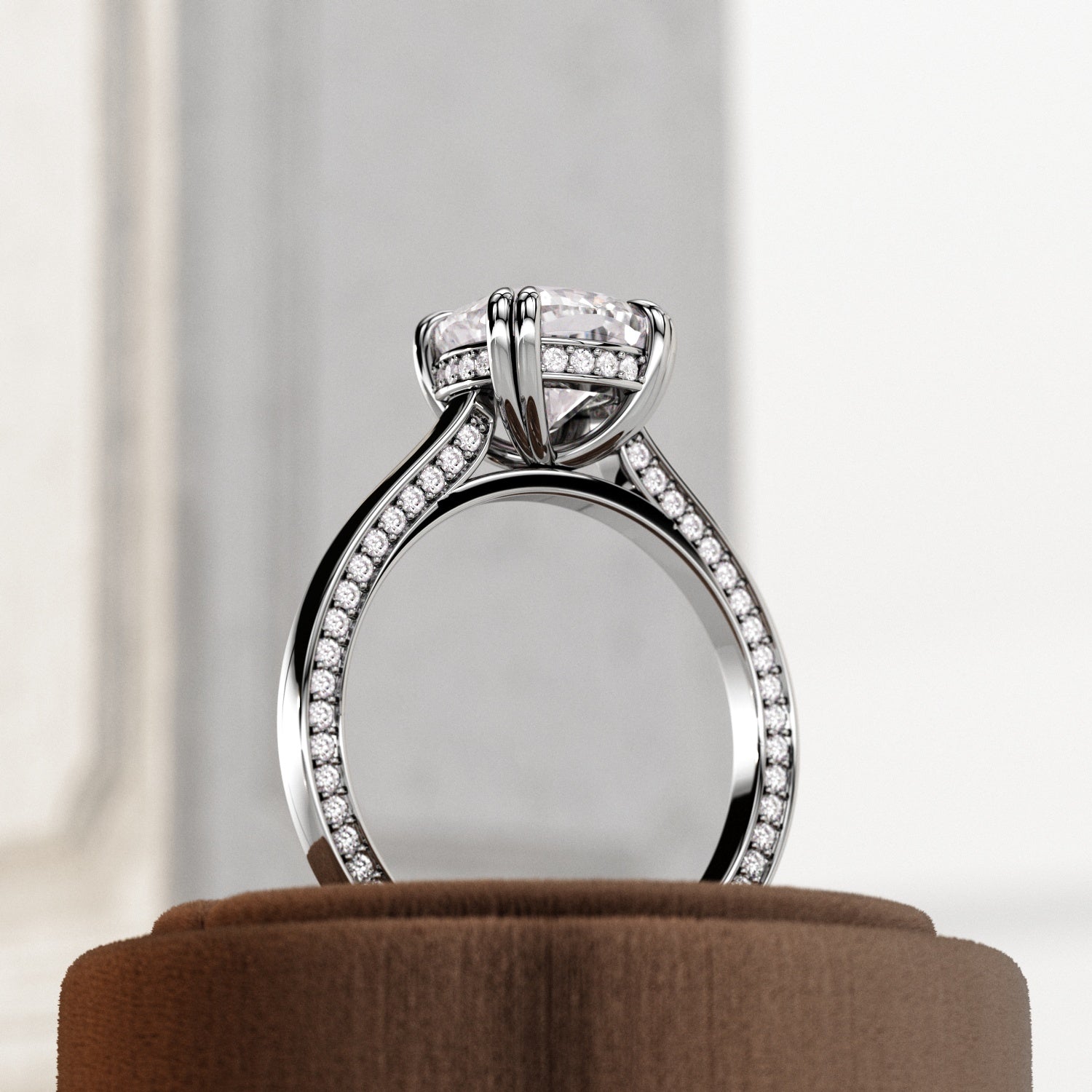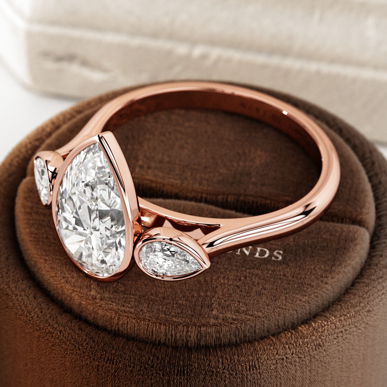 A bridal set ring is a coordinated pair of rings designed to be worn together, typically consisting of an engagement ring and a matching wedding band. These sets are crafted to complement each other aesthetically and symbolize the unity of marriage.