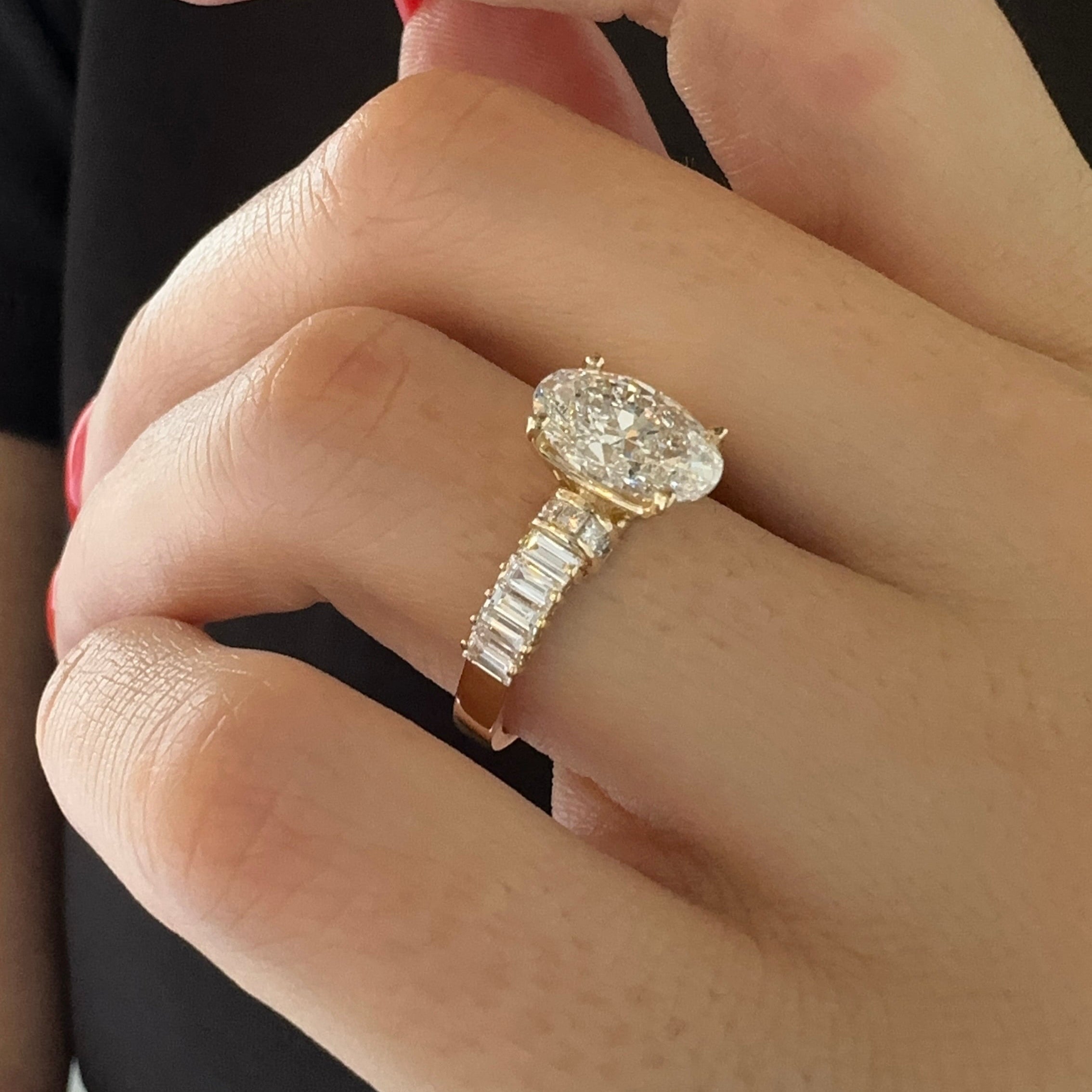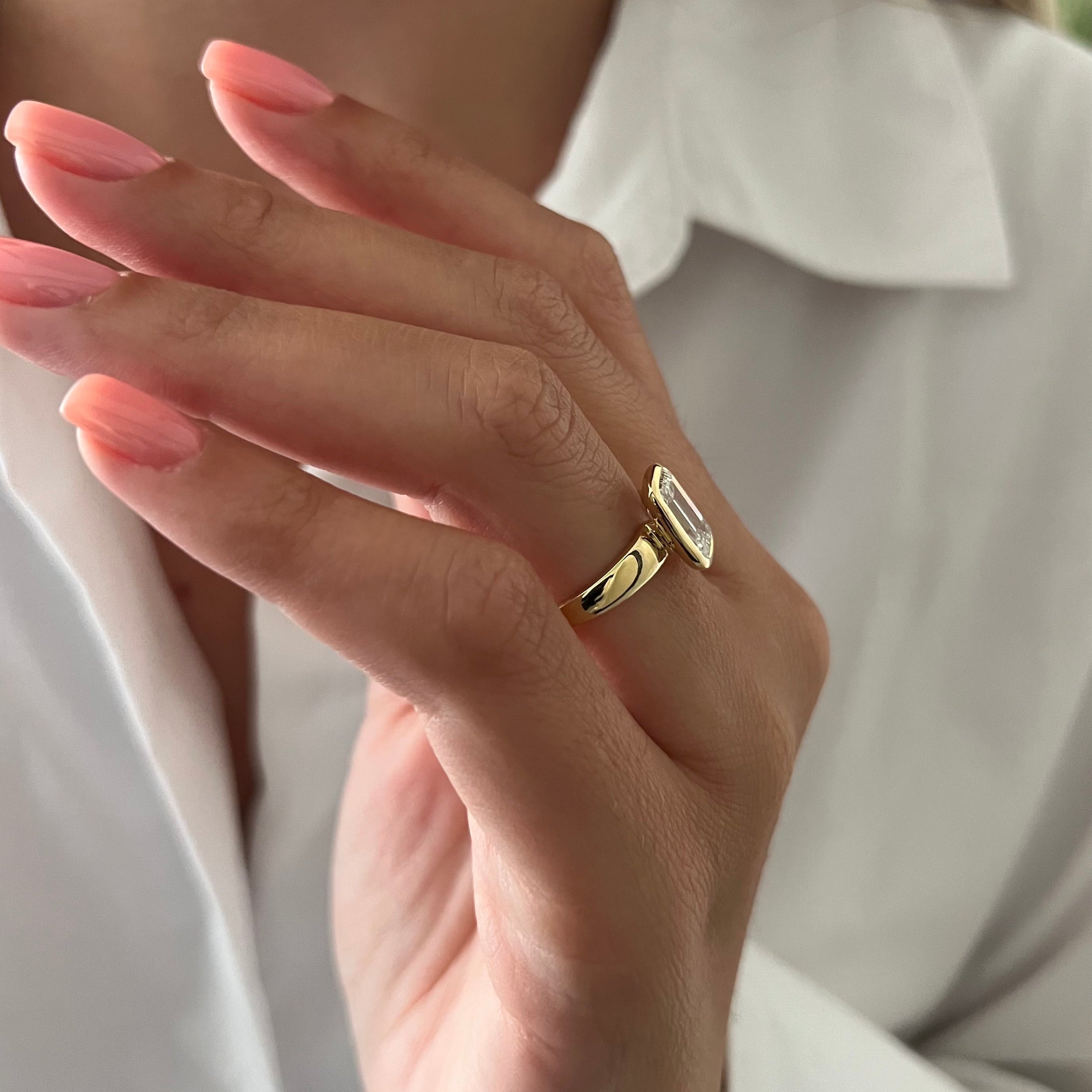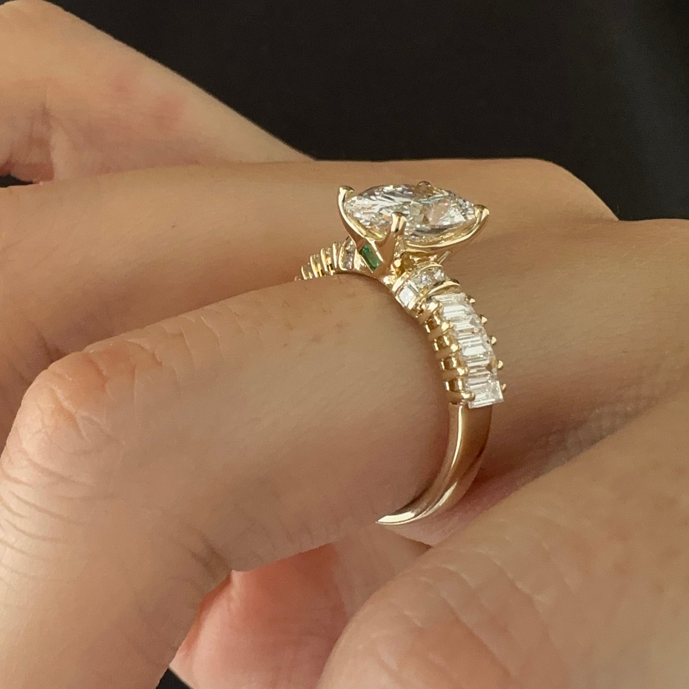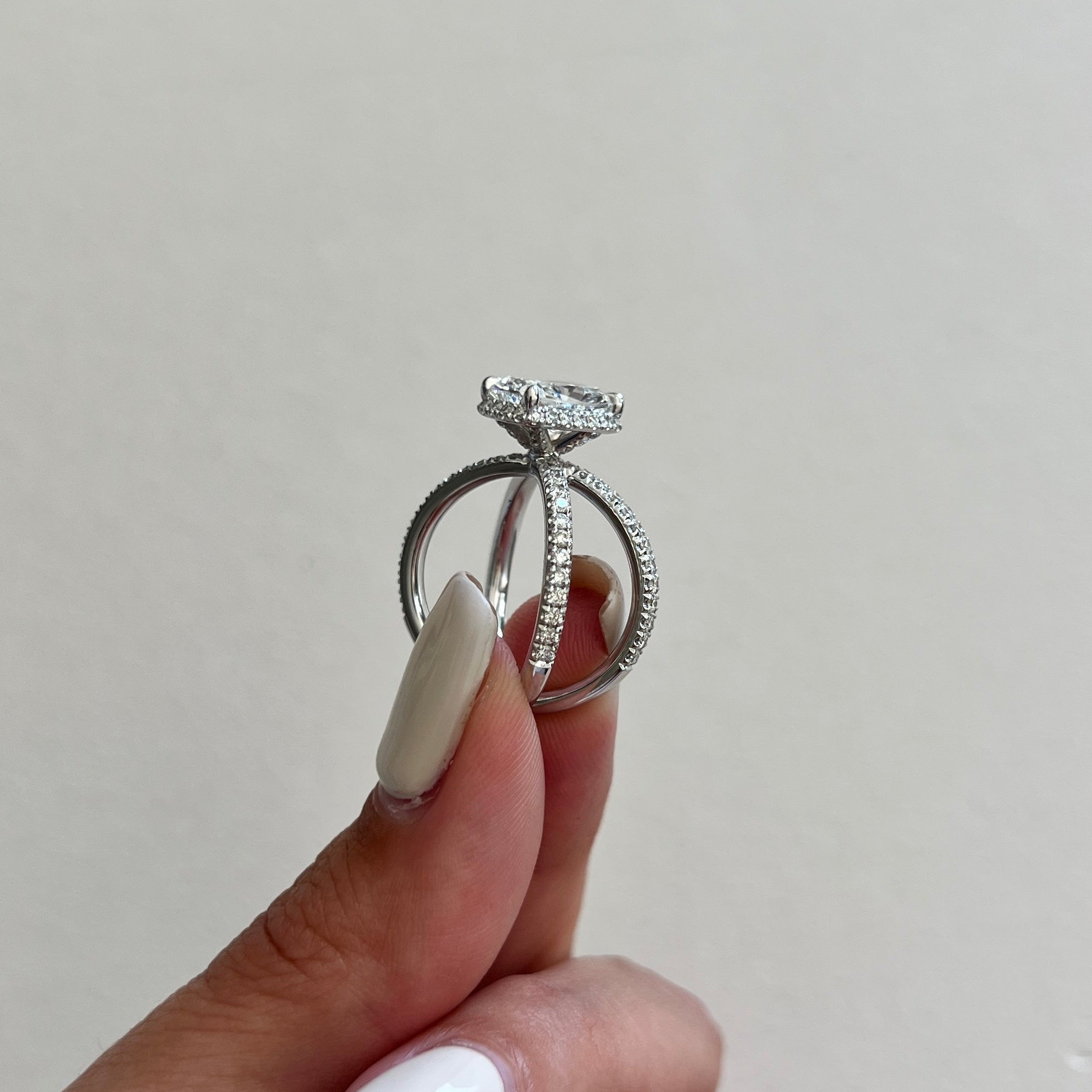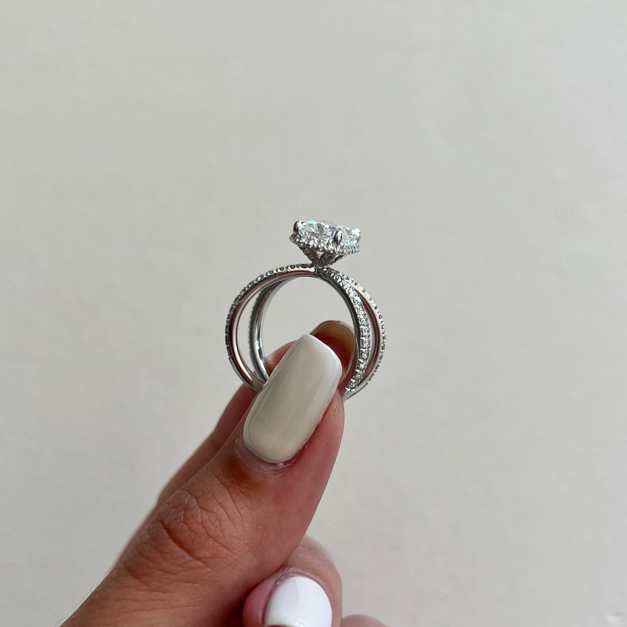 Traditionally, the engagement ring is worn closer to the heart, followed by the wedding band. However, there's no strict rule, and some choose to wear the wedding band first, with the engagement ring on top. Ultimately, it's a personal choice, and there's no right or wrong way to wear your bridal set.