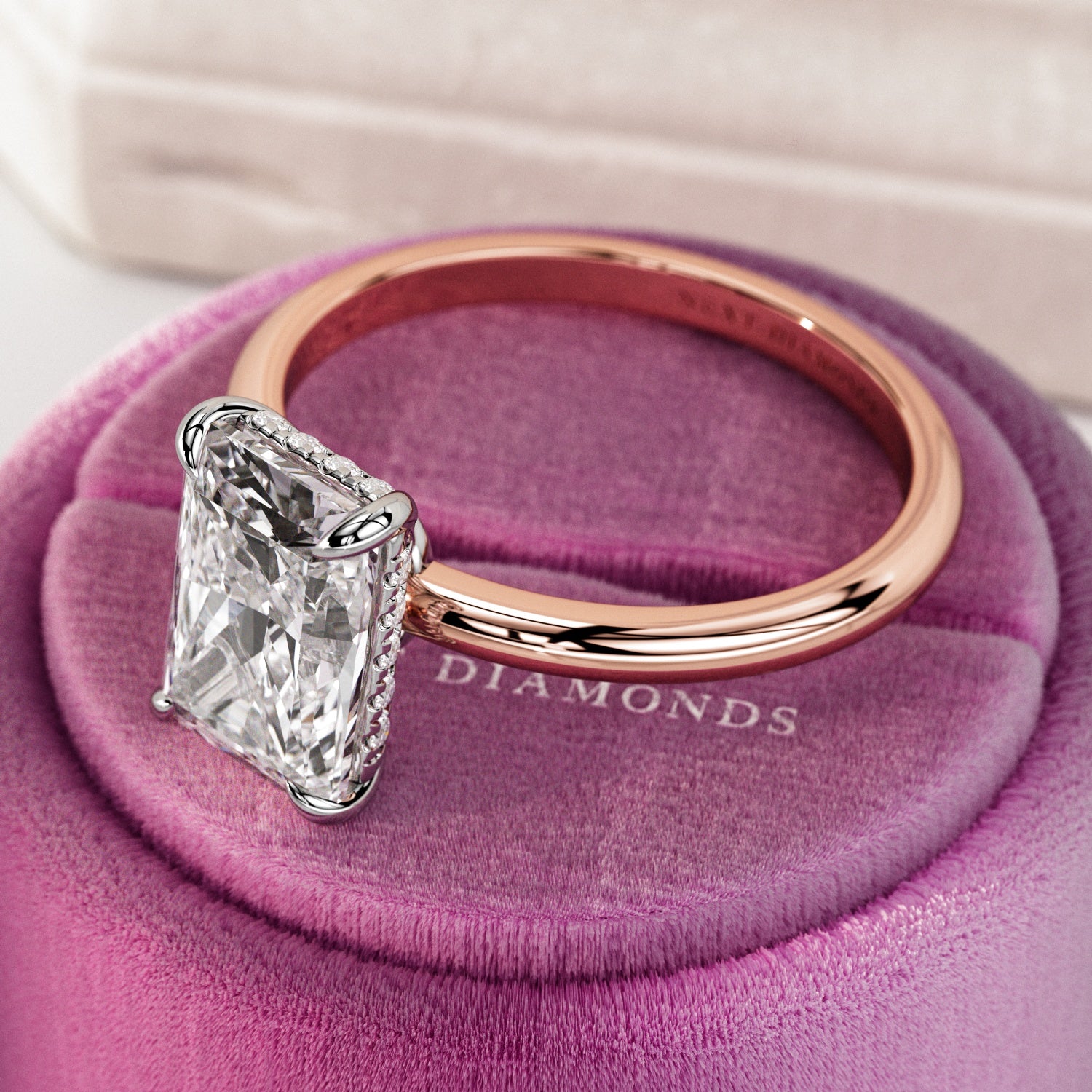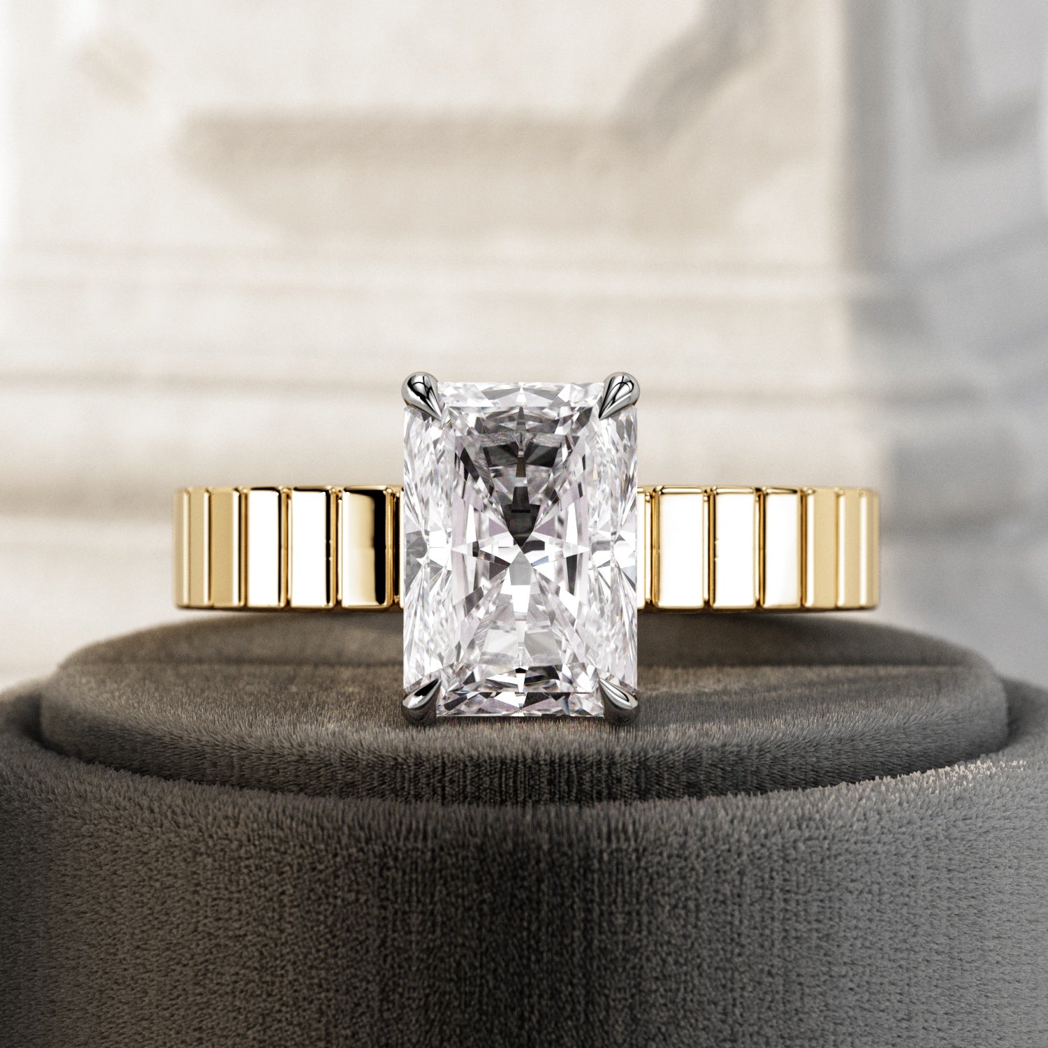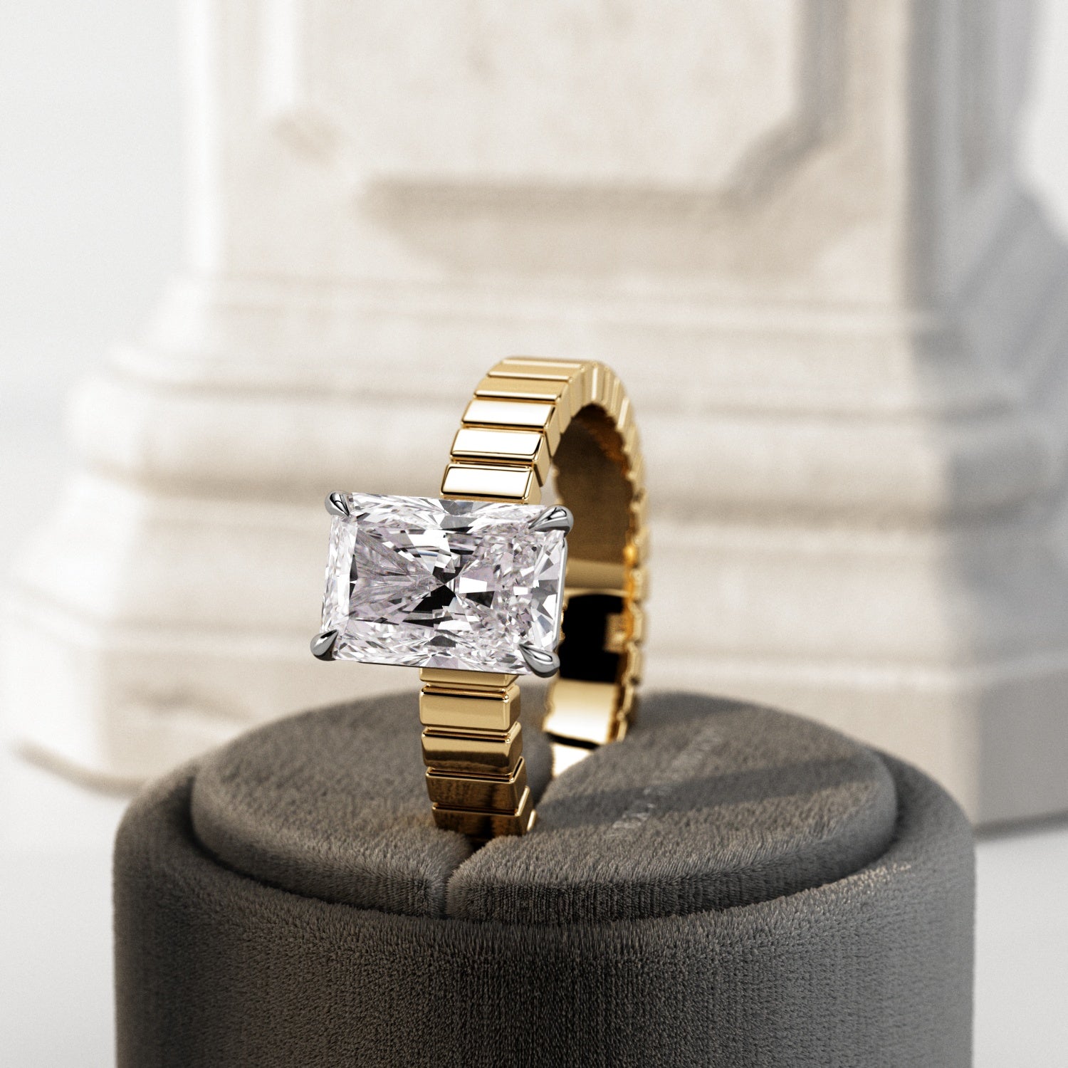 A bridal set ring is a coordinated pair of rings designed to be worn together, typically consisting of an engagement ring and a matching wedding band. These sets are crafted to complement each other aesthetically and symbolize the unity of marriage.