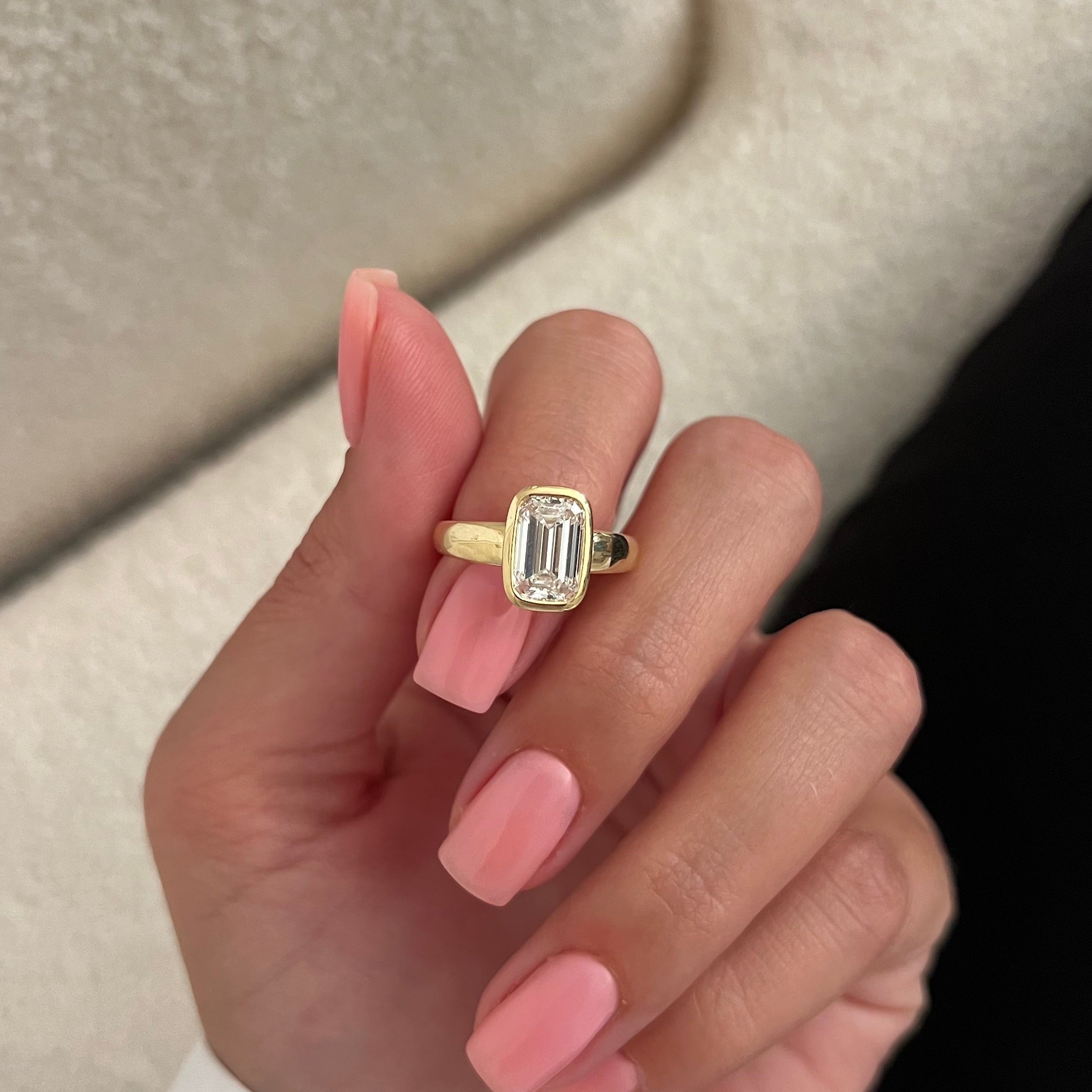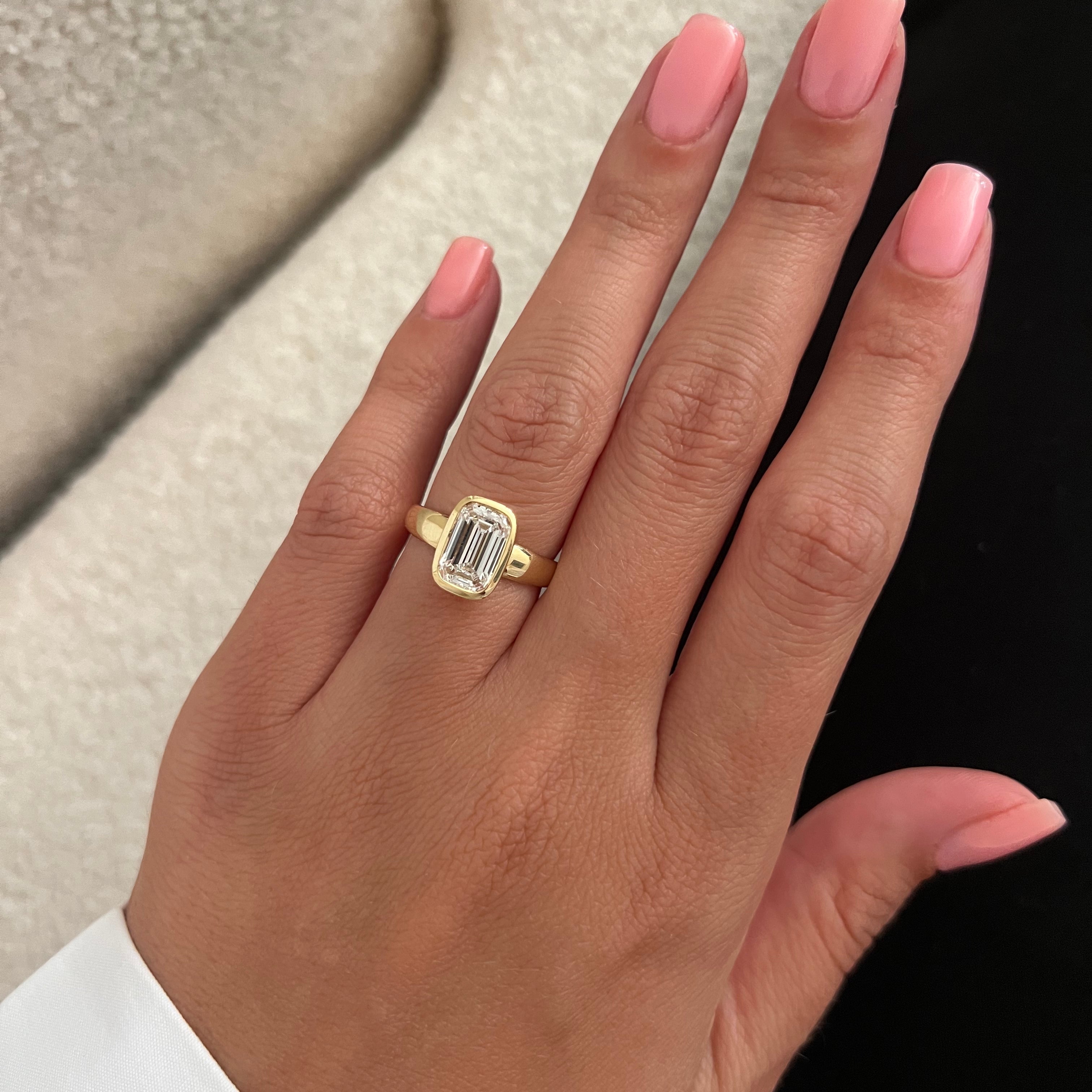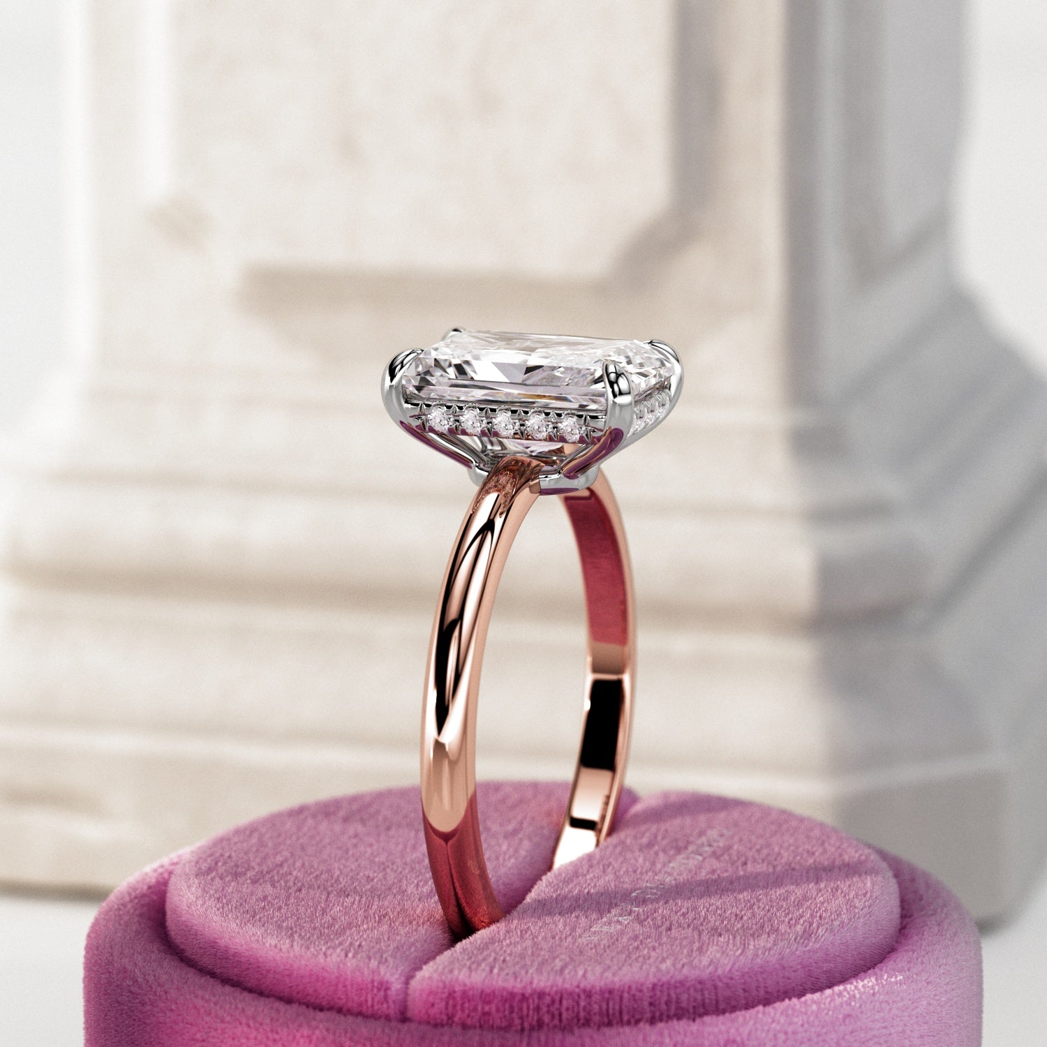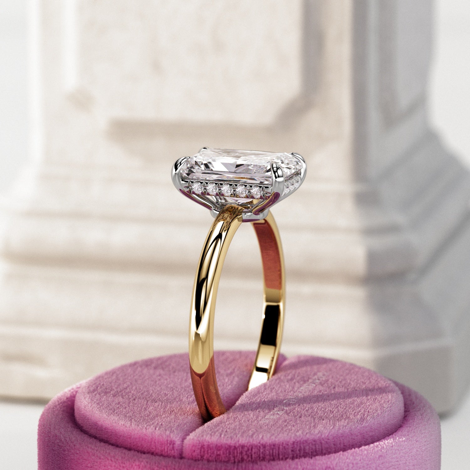 A bridal set ring is a coordinated pair of rings designed to be worn together, typically consisting of an engagement ring and a matching wedding band. These sets are crafted to complement each other aesthetically and symbolize the unity of marriage.
