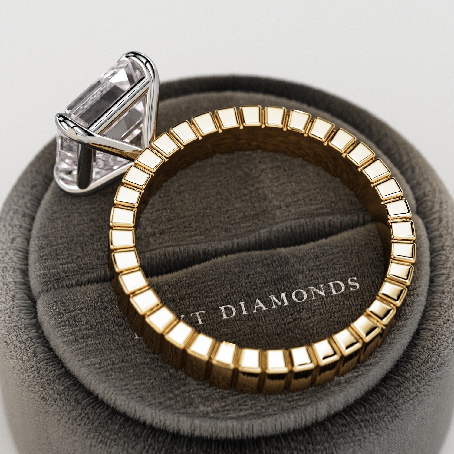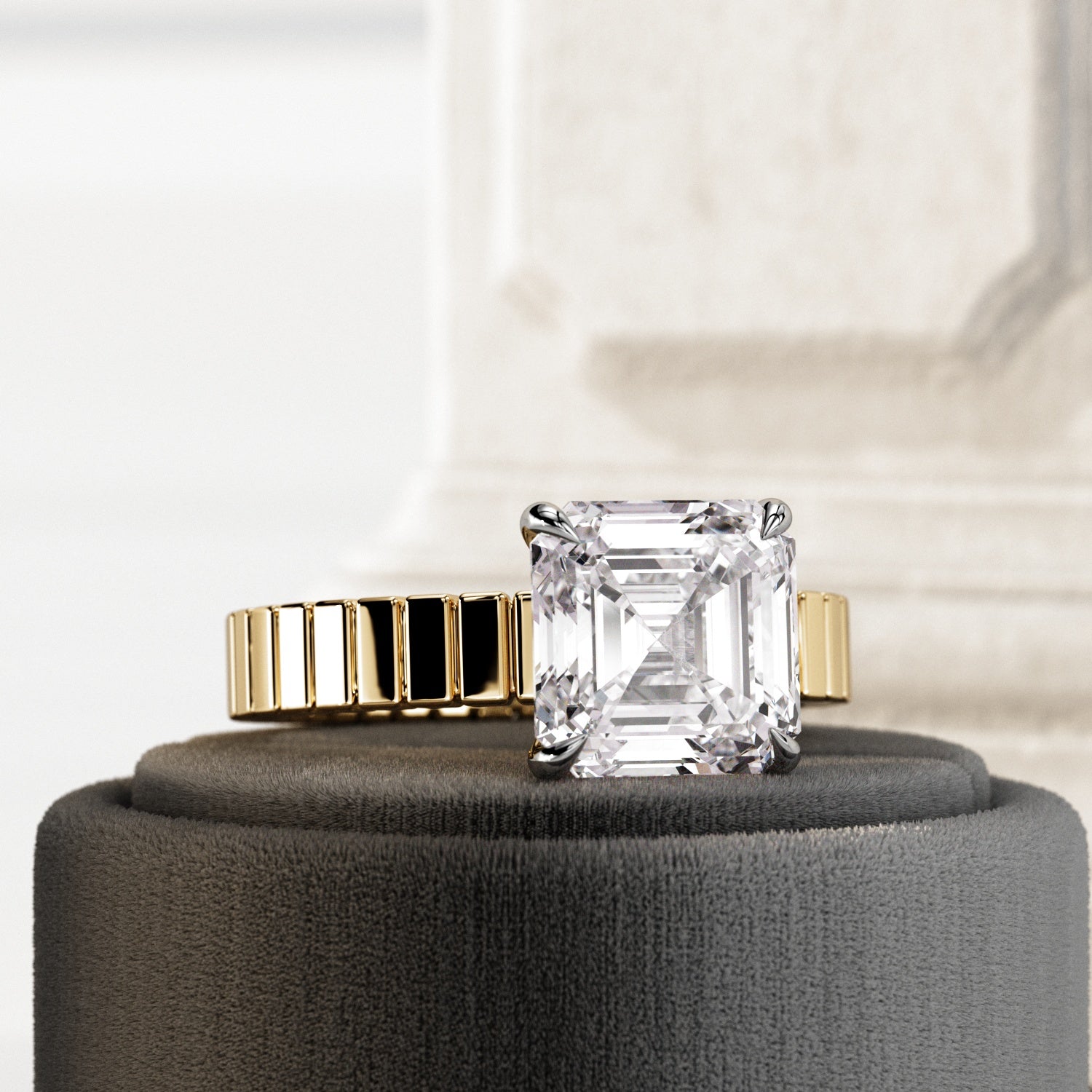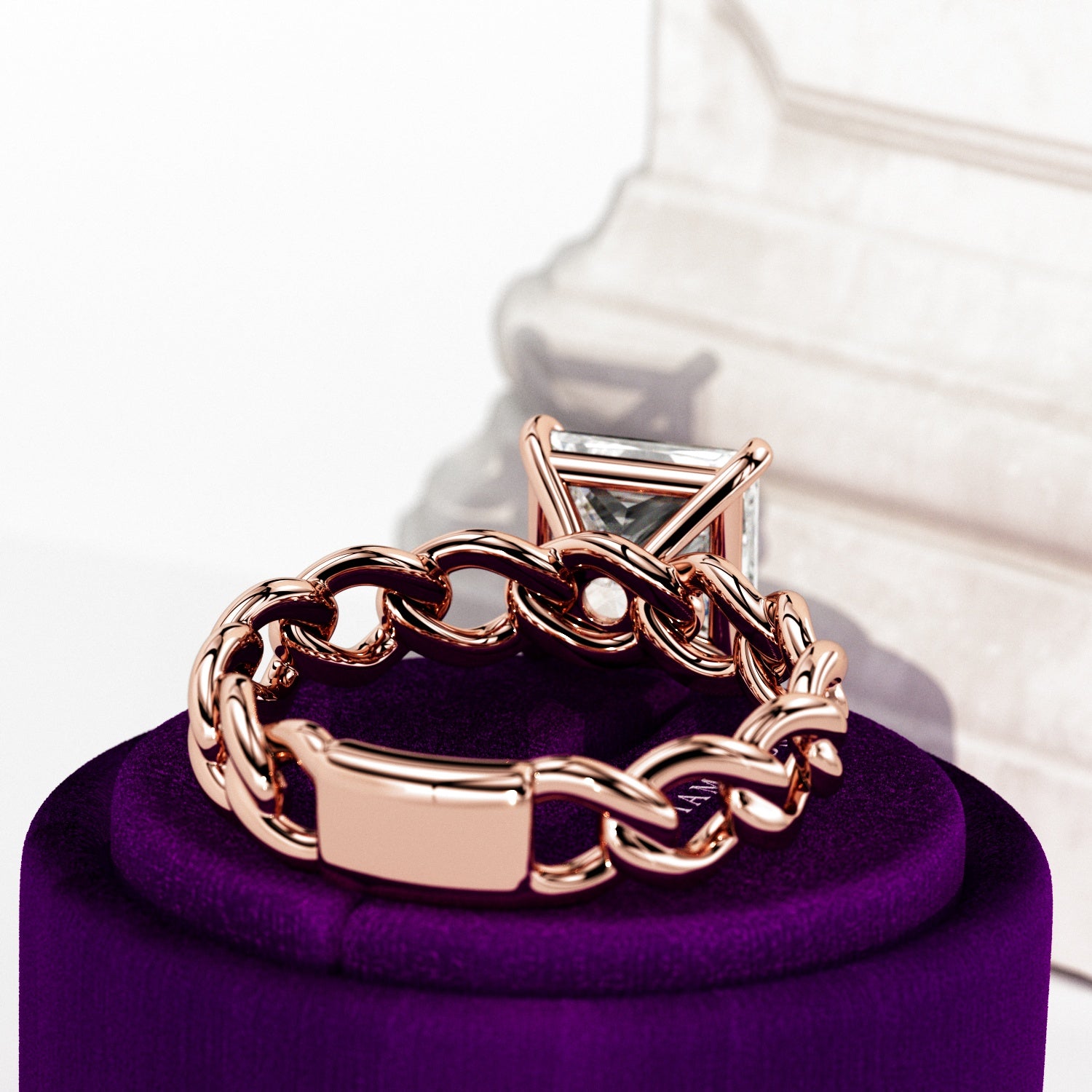 A bridal set ring is a coordinated pair of rings designed to be worn together, typically consisting of an engagement ring and a matching wedding band. These sets are crafted to complement each other aesthetically and symbolize the unity of marriage.