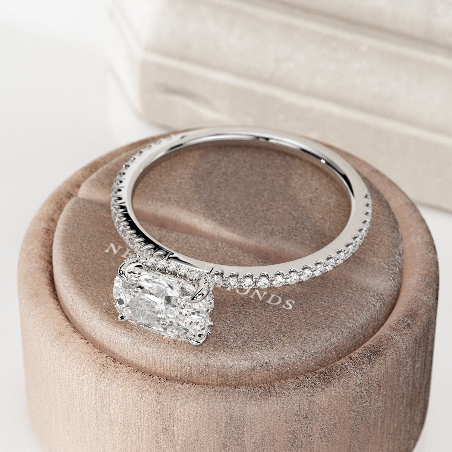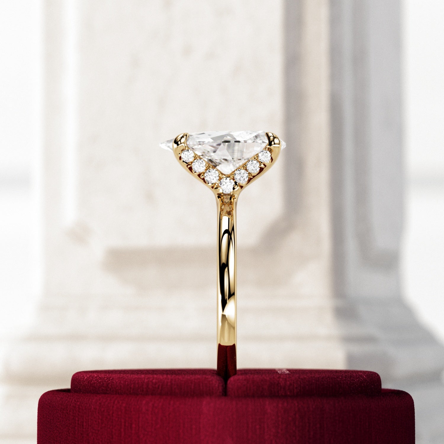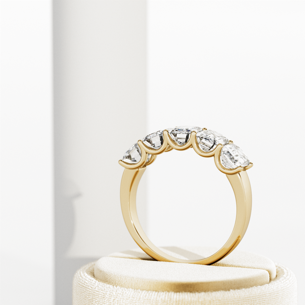 Traditionally, the engagement ring is worn closer to the heart, followed by the wedding band. However, there's no strict rule, and some choose to wear the wedding band first, with the engagement ring on top. Ultimately, it's a personal choice, and there's no right or wrong way to wear your bridal set.