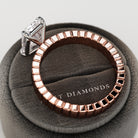 An exquisite engagement ring boasts a 3ct radiant lab-grown diamond delicately set in refined white prongs. Its band showcases a sophis...