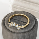 An enchanting stackable wedding ring is not only delicate but also boasts a curved design resembling a crown. Adorned with lab-grown di...