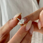 A stunning 1.5ct oval lab-grown diamond solitaire ring, set with four delicate claw prongs in a minimalist floating design, showcasing ...