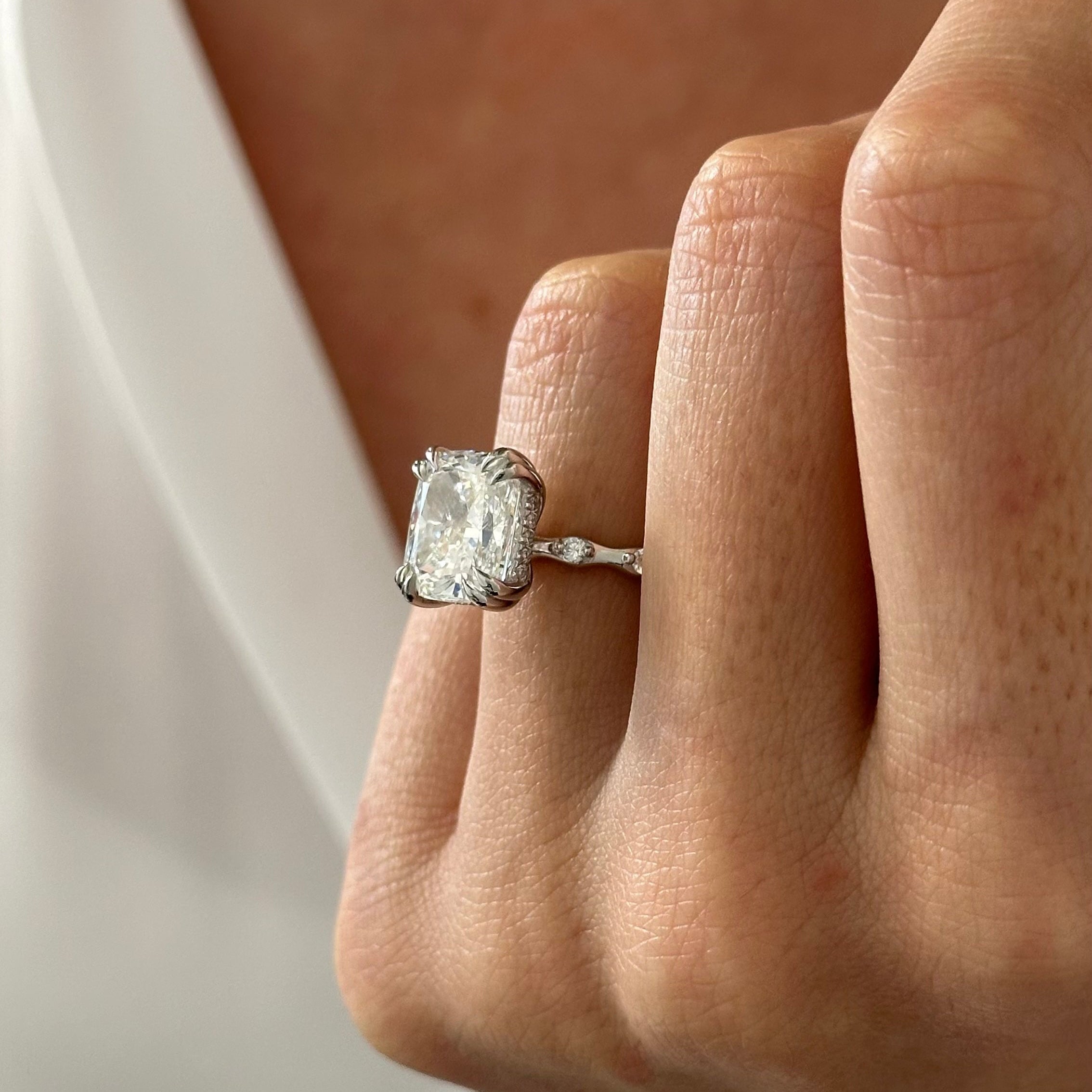 A breathtaking 5-carat elongated cushion lab-grown diamond, expertly cut with a perfect 1.2 length-to-width ratio for a graceful and ti...