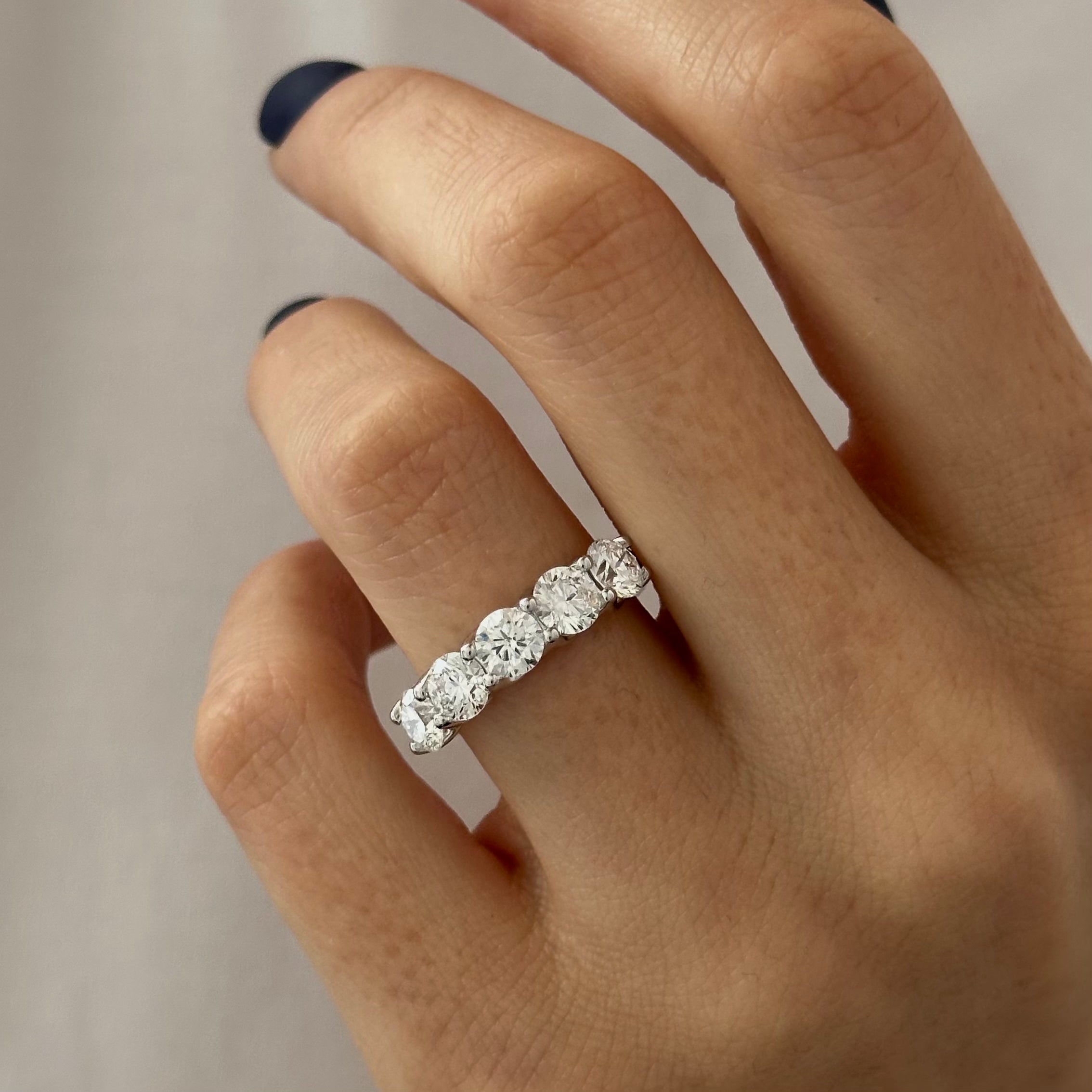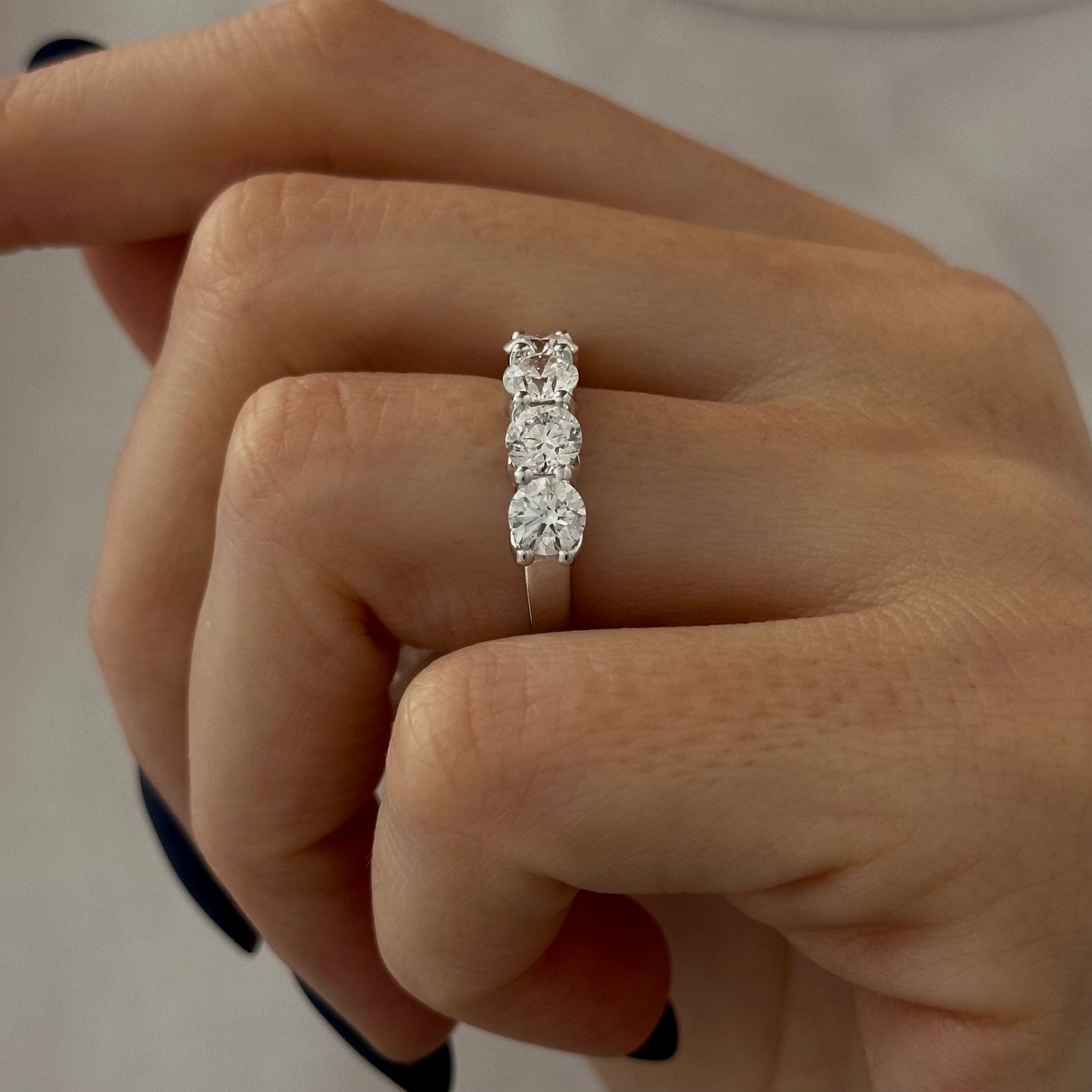 A gorgeous stackable ring showcases a total carat weight of 2.1 in lab-created diamonds, set in an elegant trellis style. The seven sto...