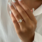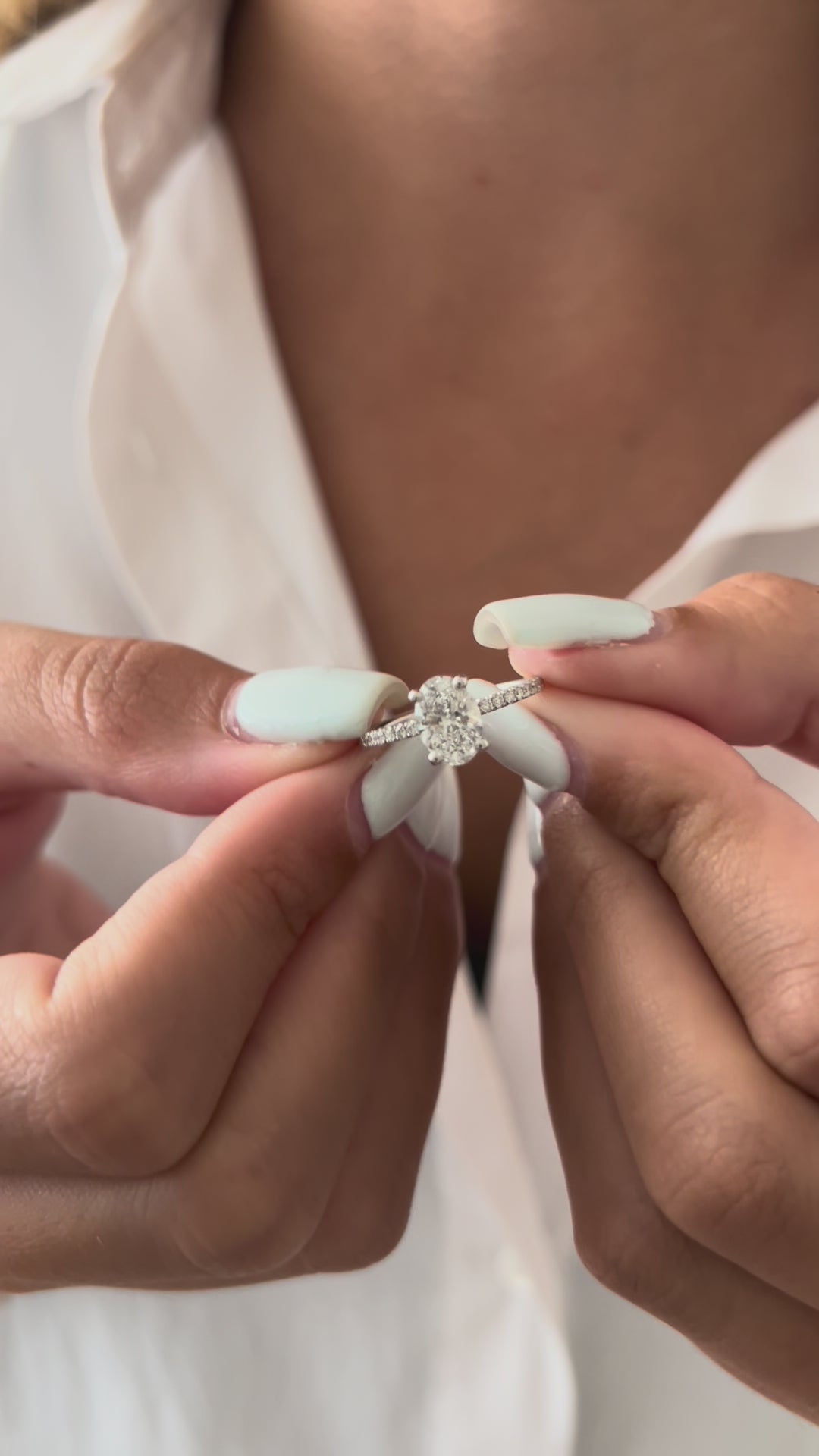 This stunning engagement ring features a breathtaking 1 carat oval lab grown cvd diamond, delicately held in place by four expertly cra...