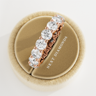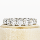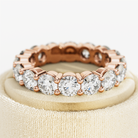 An outstanding eternity band features a total carat weight of 4.8, with each round brilliant-cut lab-grown diamond weighing 0.3 carats....