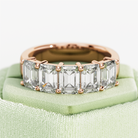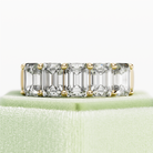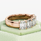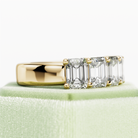 A beautiful five-stone ring showcases a total of 2.5 carats of emerald-cut lab-grown diamonds, with each stone weighing 0.5 carats. The...