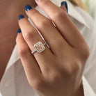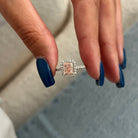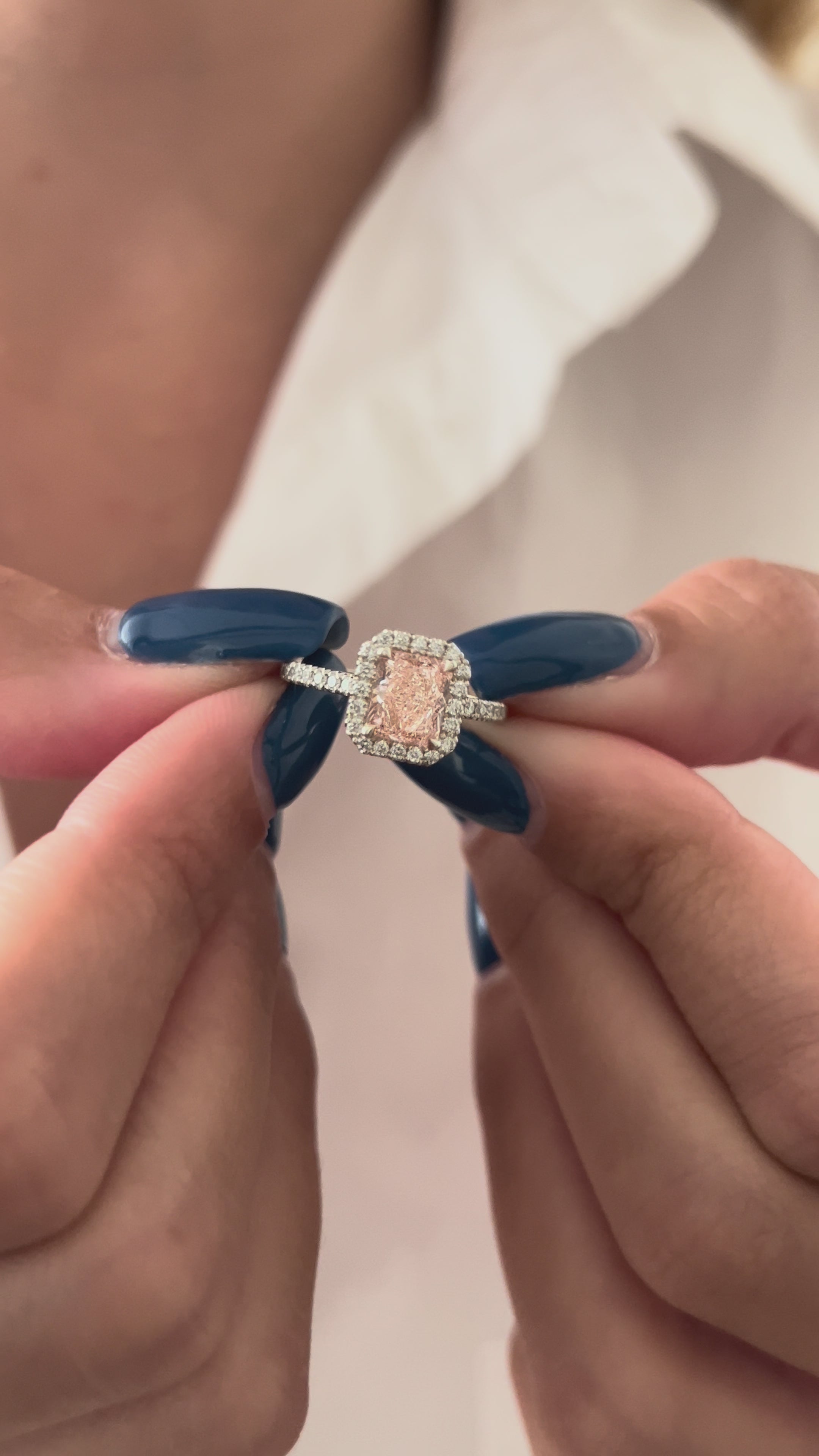 A captivating 1-carat elongated radiant fancy vivid pink lab-grown diamond ring is delicately set in a classic design featuring four gr...