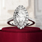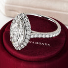 A stunning 2-carat marquise lab-grown diamond, elegantly showcased in a mesmerizing halo setting. This cathedral-style masterpiece exud...