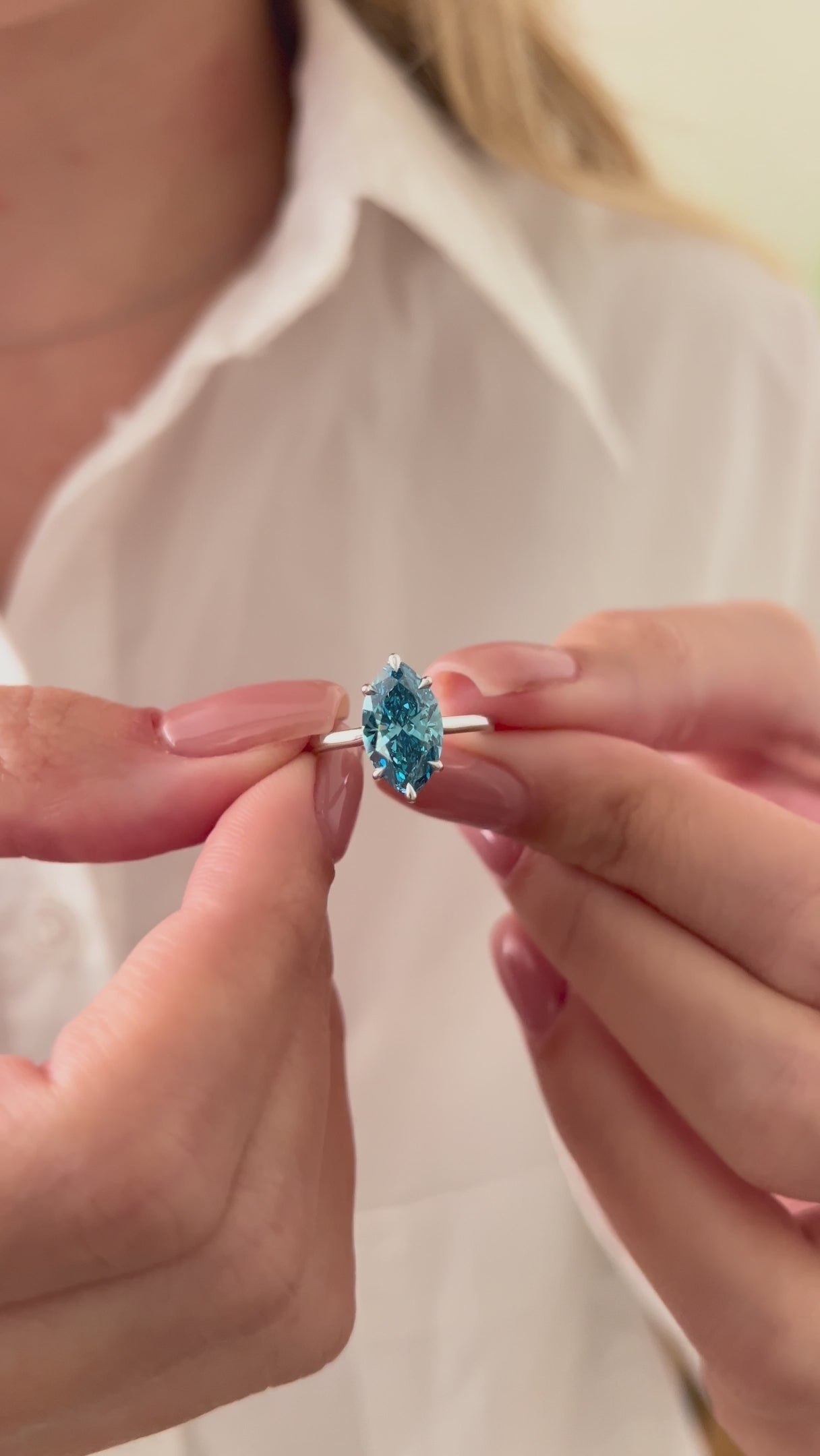 A remarkable 2-carat marquise fancy vivid blue lab-grown diamond ring, set in a classic solitaire design with four dainty claw prongs. ...