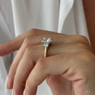 A stunning classic 3-stone engagement ring featuring a magnificent 3-carat square cushion-cut lab-grown diamond center stone, flanked b...
