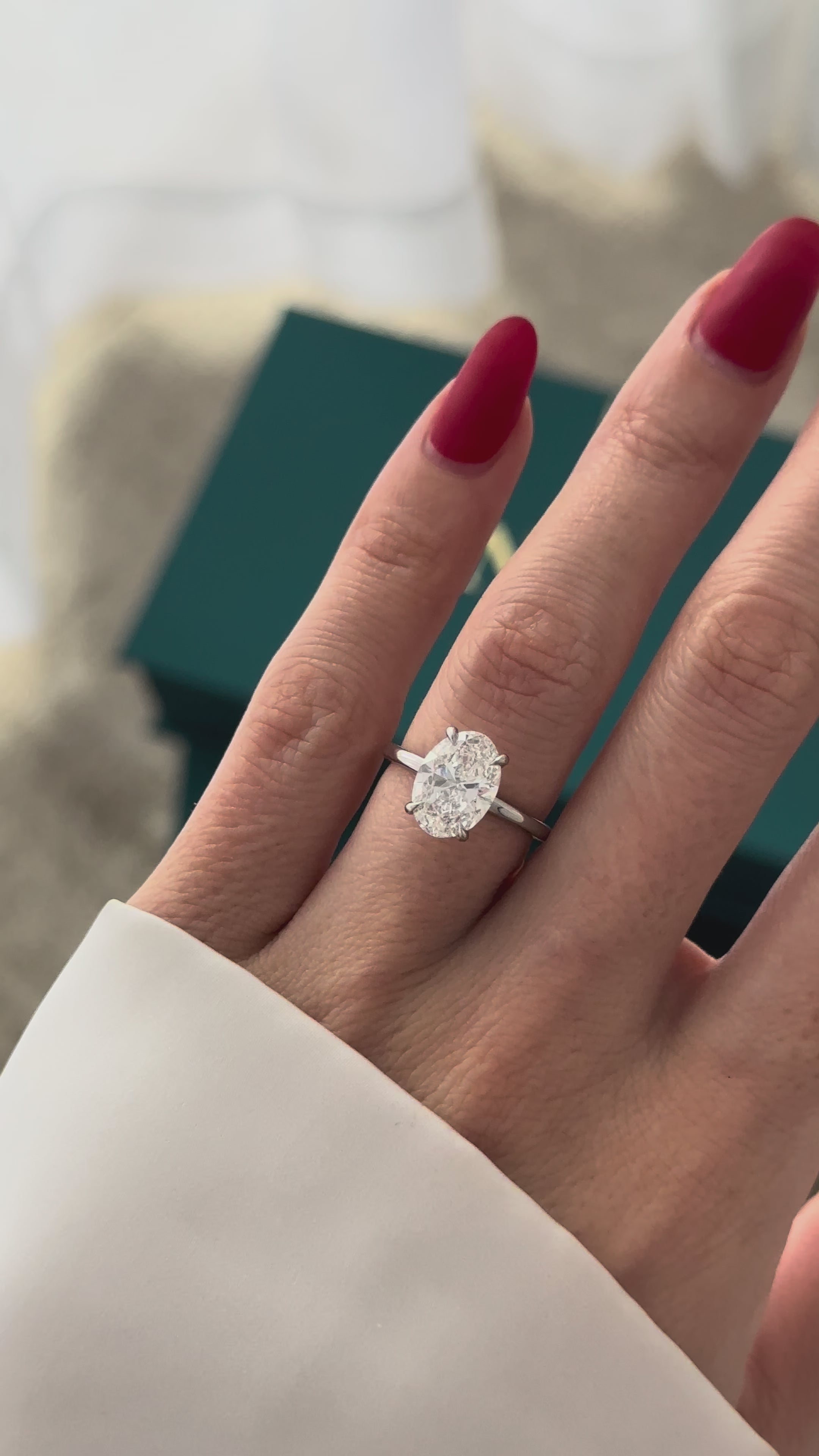 A stunning 3-carat oval lab-grown diamond solitaire ring, exuding elegance and charm. The exquisite design features a brilliant oval-sh...