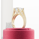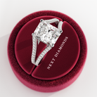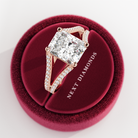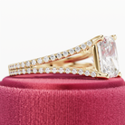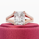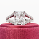An extraordinary ring showcases an exceptional 2.5-carat radiant-cut lab-grown diamond as its centerpiece. The split shank design adds ...