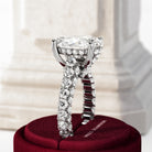 An exquisite engagement ring is a passionate celebration of love. At its heart, a dazzling 5-carat pear diamond takes center stage, sur...