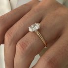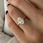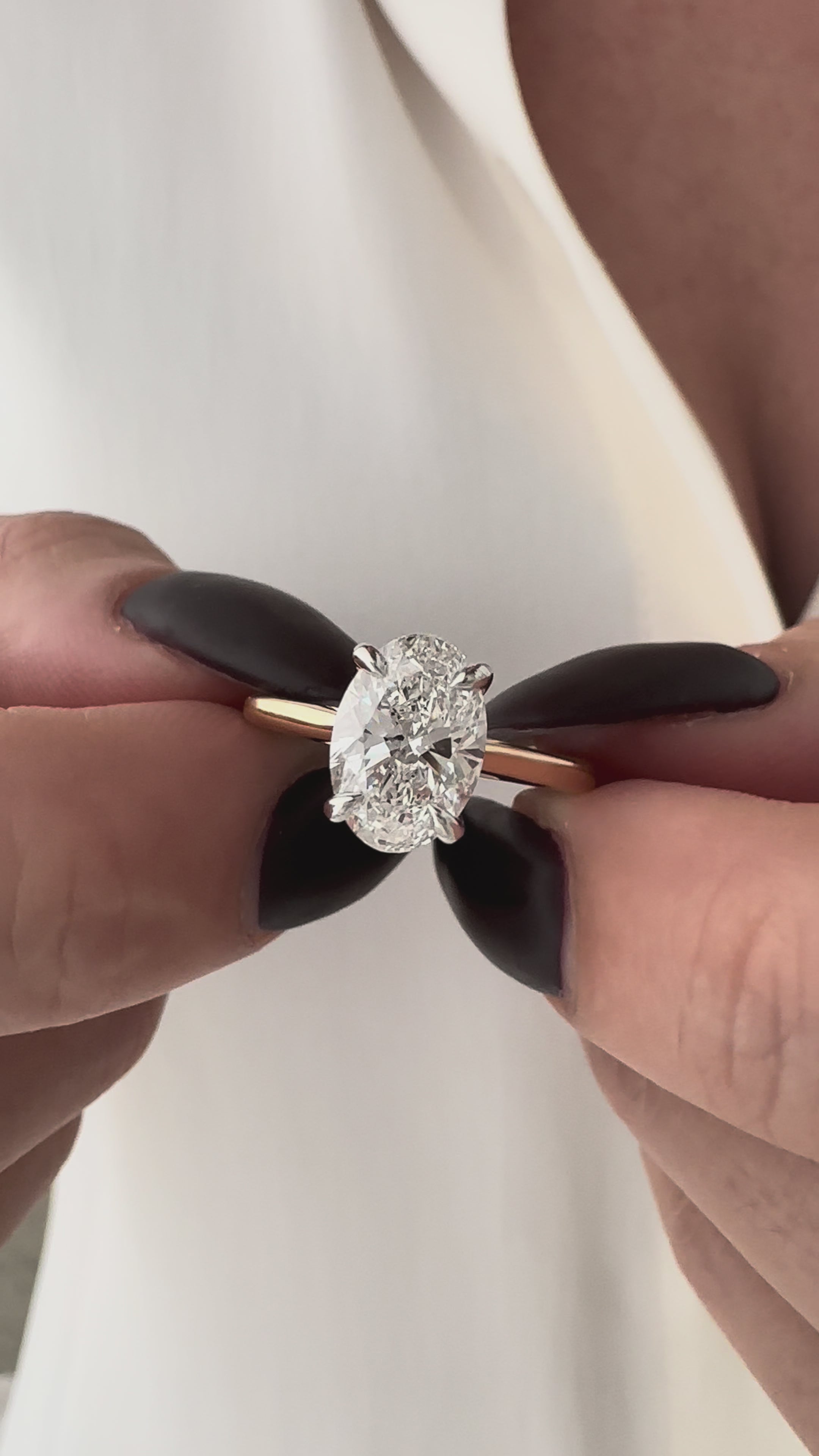 An exquisite 2-carat oval lab-grown diamond solitaire ring with a timeless lotus design basket, showcasing elegance and sophistication....