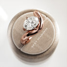 A striking interpretation of modern elegance, this sculptural engagement ring showcases a 2-carat oval E VVS2 lab-grown diamond, cradle...