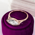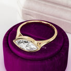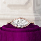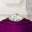 An elegant engagement ring boasts a beautiful 1.5-carat marquise lab-grown diamond, set horizontally in an east-west orientation. The u...