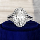 An enchanting engagement ring features a stunning 3-carat oval shape diamond at its focal point. The diamond is elegantly secured by fo...
