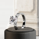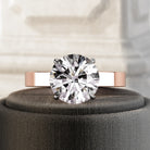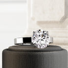 An exquisite engagement ring features a 3ct round brilliant lab-grown diamond delicately set in refined white claw prongs. Its band sho...