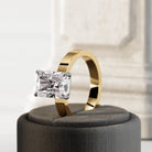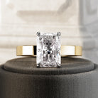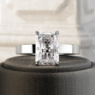 An exquisite engagement ring features a 3ct radiant lab-grown diamond delicately set in refined white claw prongs. Its band showcases a...