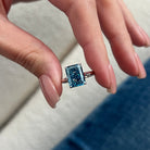 A remarkable 4-carat elongated radiant fancy vivid blue lab-grown diamond ring, set in a classic solitaire design with four dainty claw...