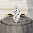 A beautiful engagement ring showcases a 1.5-carat marquise lab-grown diamond, elegantly held by two V prongs crafted in white gold. The...