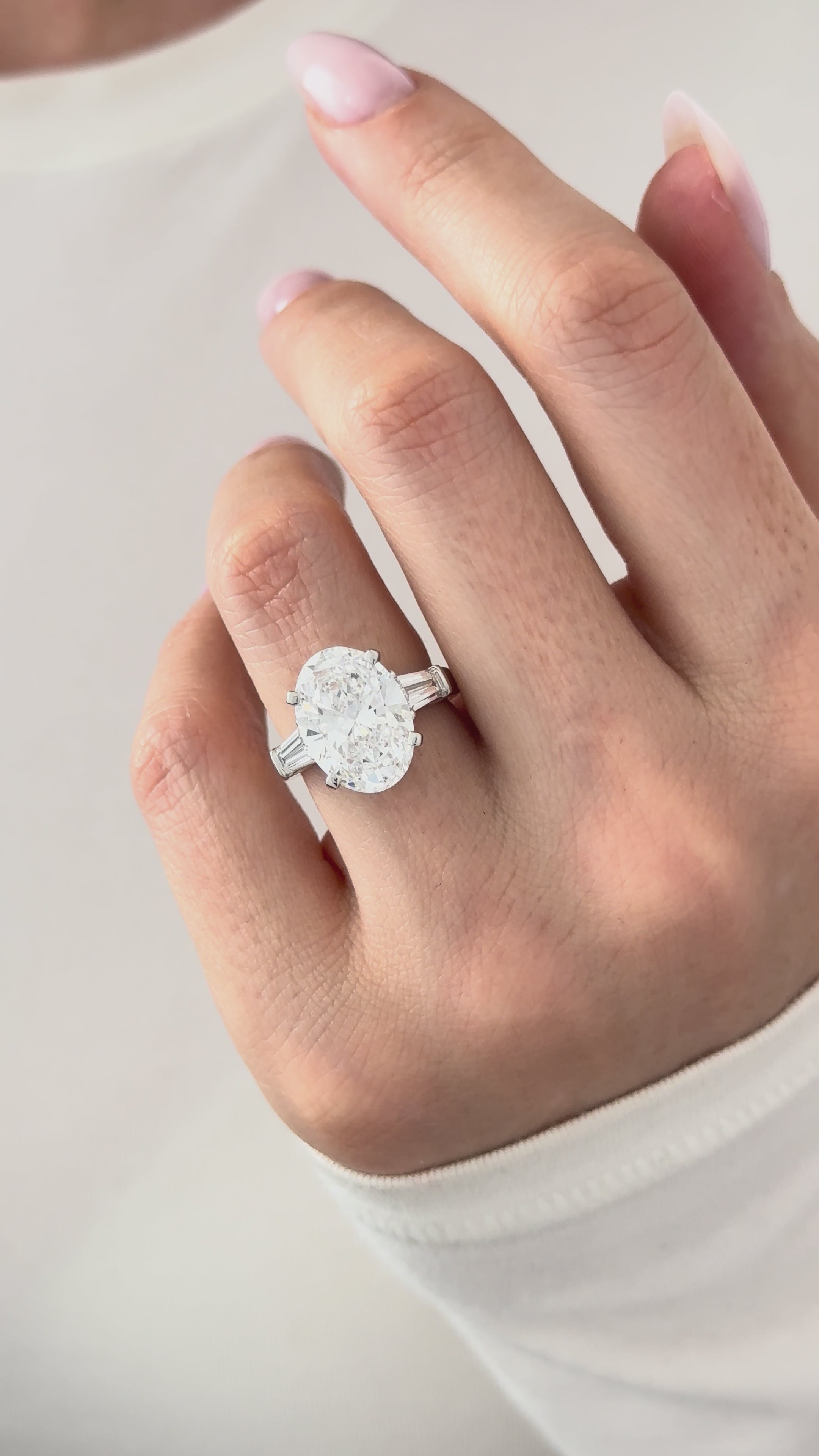 Exquisite high-end three-stone ring showcasing a dazzling 6-carat oval-shaped lab-grown diamond. Carefully selected for its remarkable ...