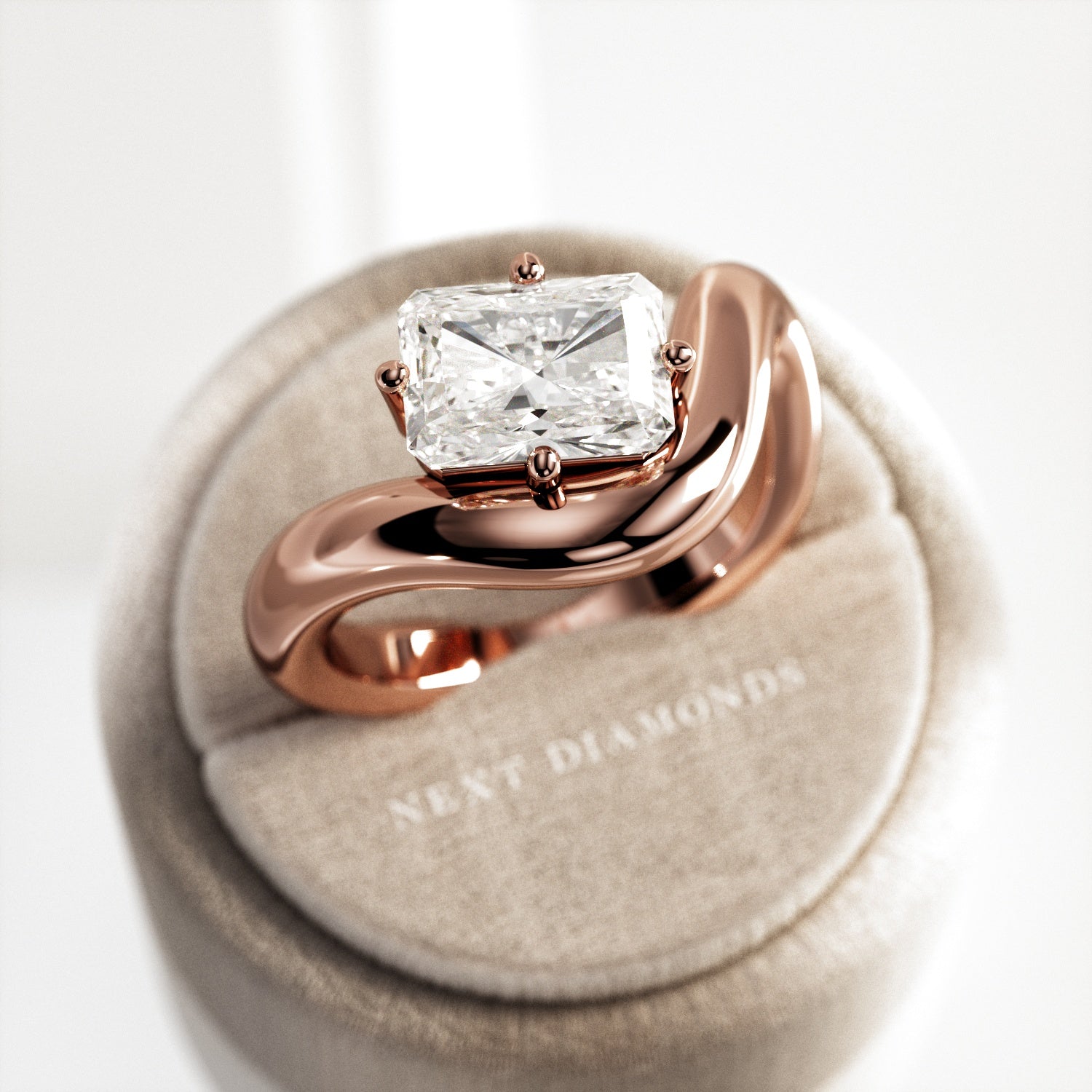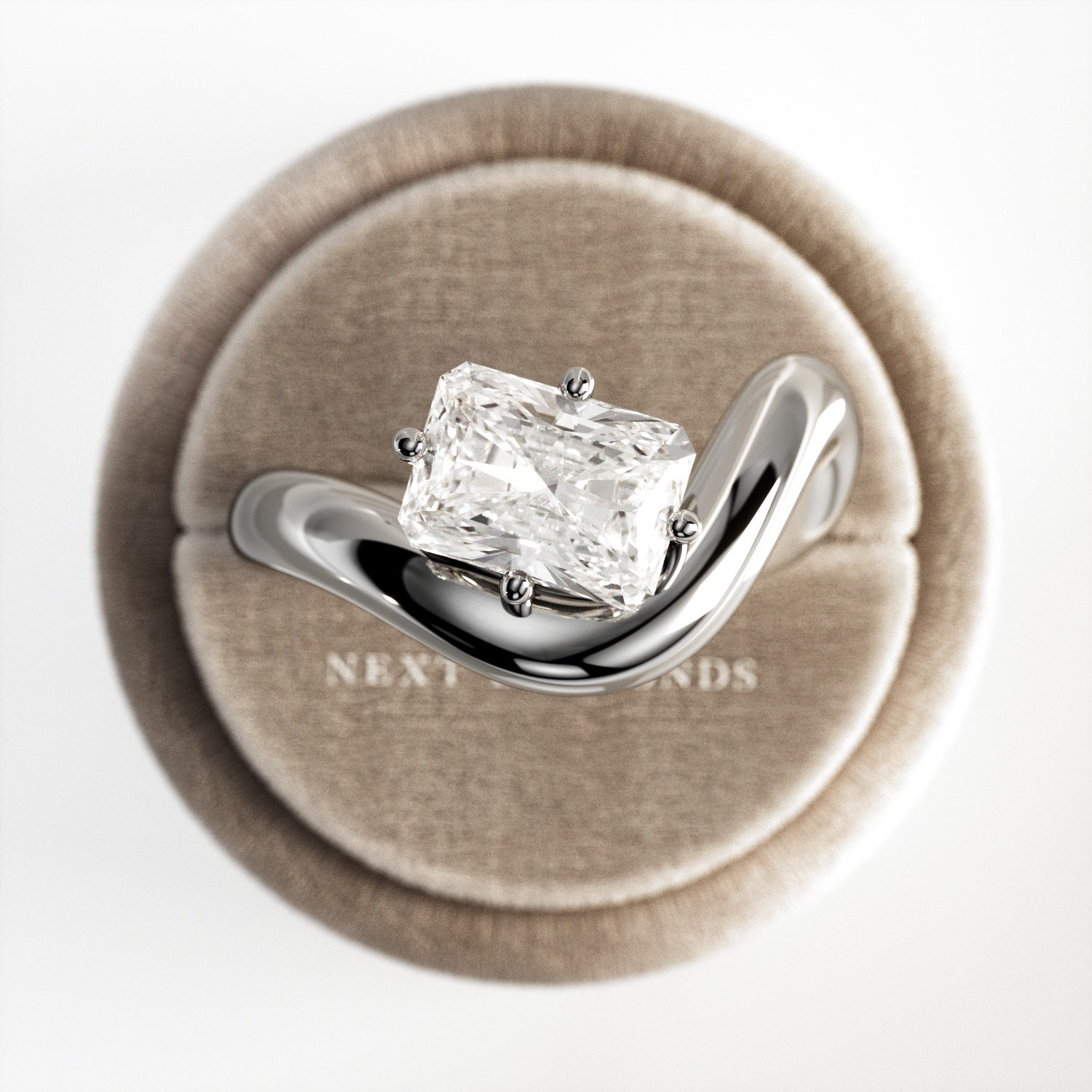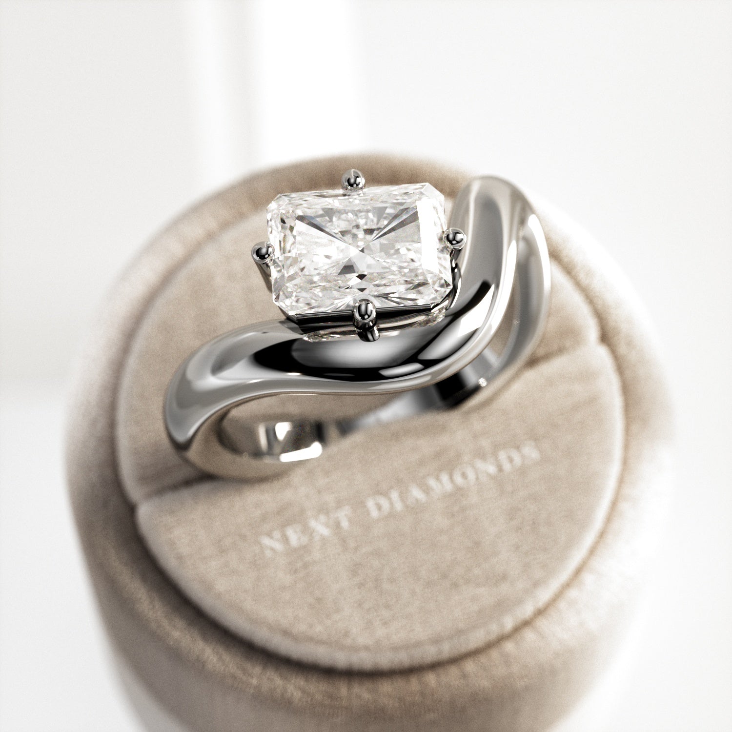 A striking interpretation of modern elegance, this sculptural engagement ring showcases a 2-carat radiant cut E VVS2 lab-grown diamond,...