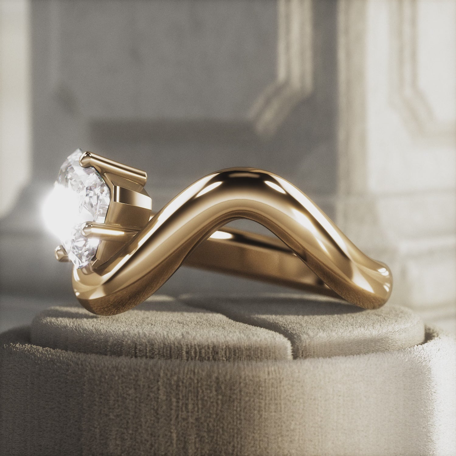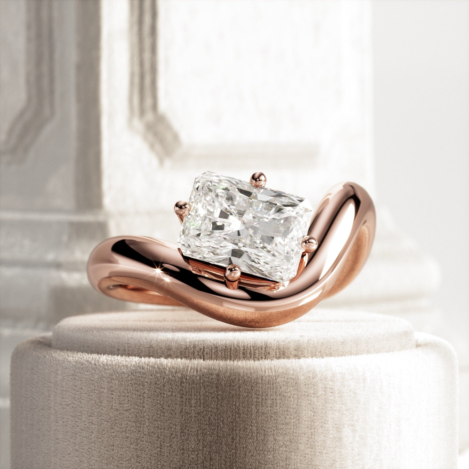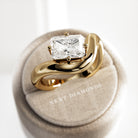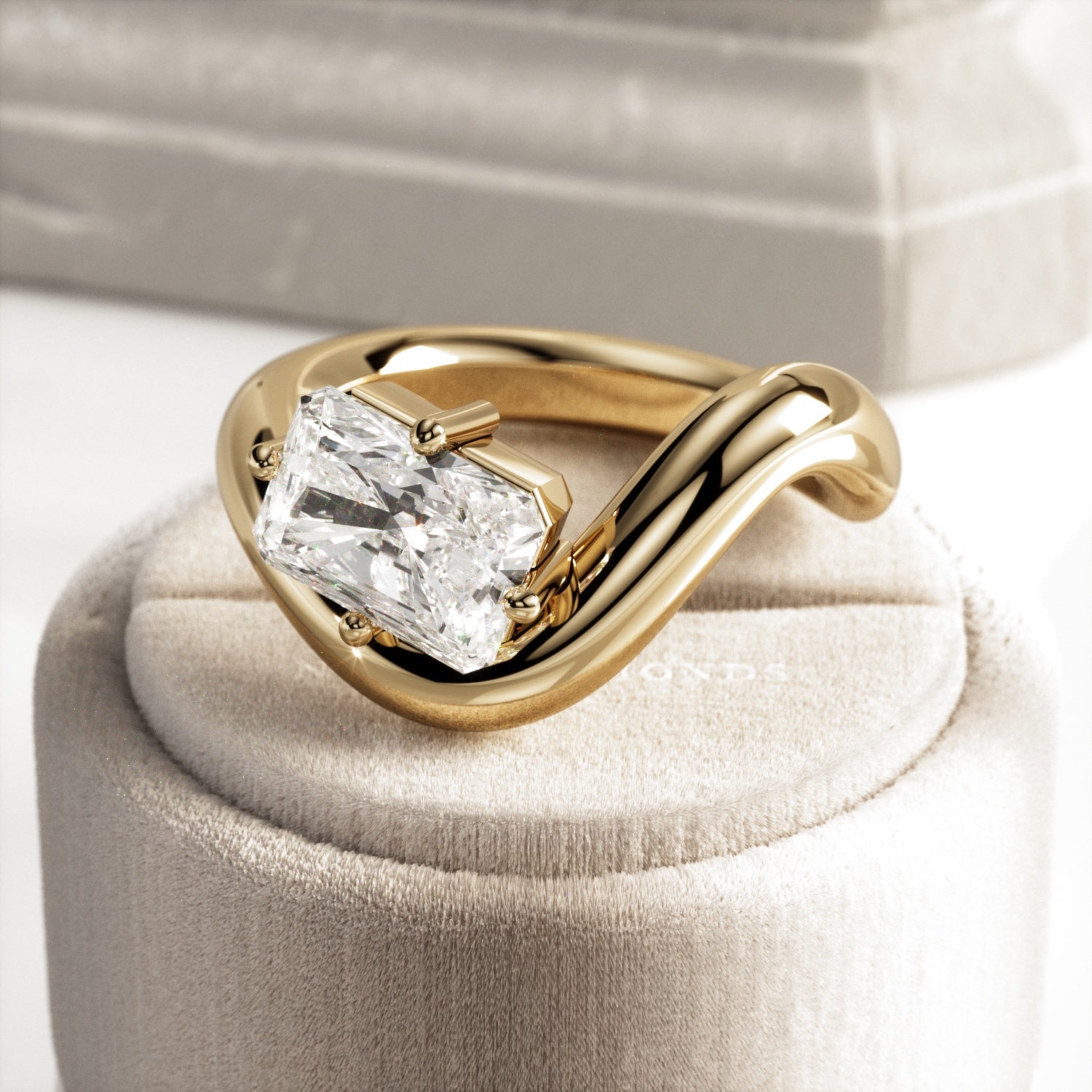A striking interpretation of modern elegance, this sculptural engagement ring showcases a 2-carat radiant cut E VVS2 lab-grown diamond,...