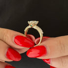This exquisite engagement ring is a work of art, crafted in the timeless art deco style with a breathtaking 2-carat oval-shaped lab-gro...