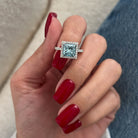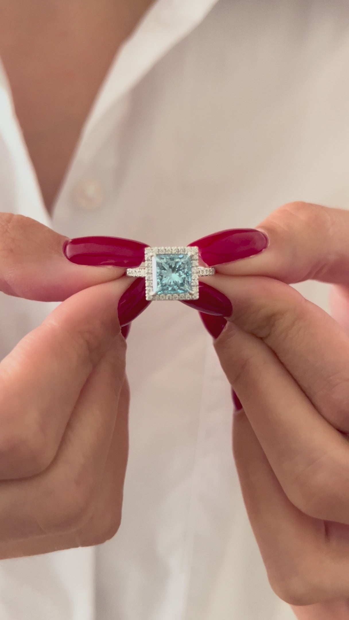 This exquisite engagement ring features a stunning 2-carat fancy vivid blue lab-grown diamond set in a classic princess cut. Surroundin...