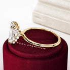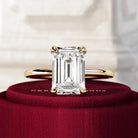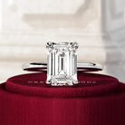 An exquisite 2-carat lab-grown emerald-cut diamond engagement ring, evoking the essence of a whispered commitment. The center stone, a ...
