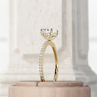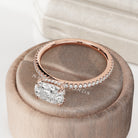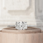 This distinctive engagement ring presents a 1-carat elongated cushion-cut diamond set horizontally for a modern flair. The stones artfu...